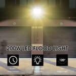 【200W Super Bright & Energy Saving】Equipped with 240 ultra-bright LED beads, this 200 watt led flood light can produce up to 22,500lm high brightness.Equivalent to 1350W halogen bulbs, it can save more than 83% electricity bill.120°beam angle and shadow-free, it can illuminate the corners more efficiently.And it can work at any voltage between 85-277V