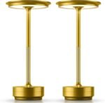 2 Pack Cordless Table Lamps Rechargeable,Table Light USB Touch Battery Powered Table Lamp LED Portable Patio/Dining Table/bar/Outdoor Table Light [Burnished Gold]