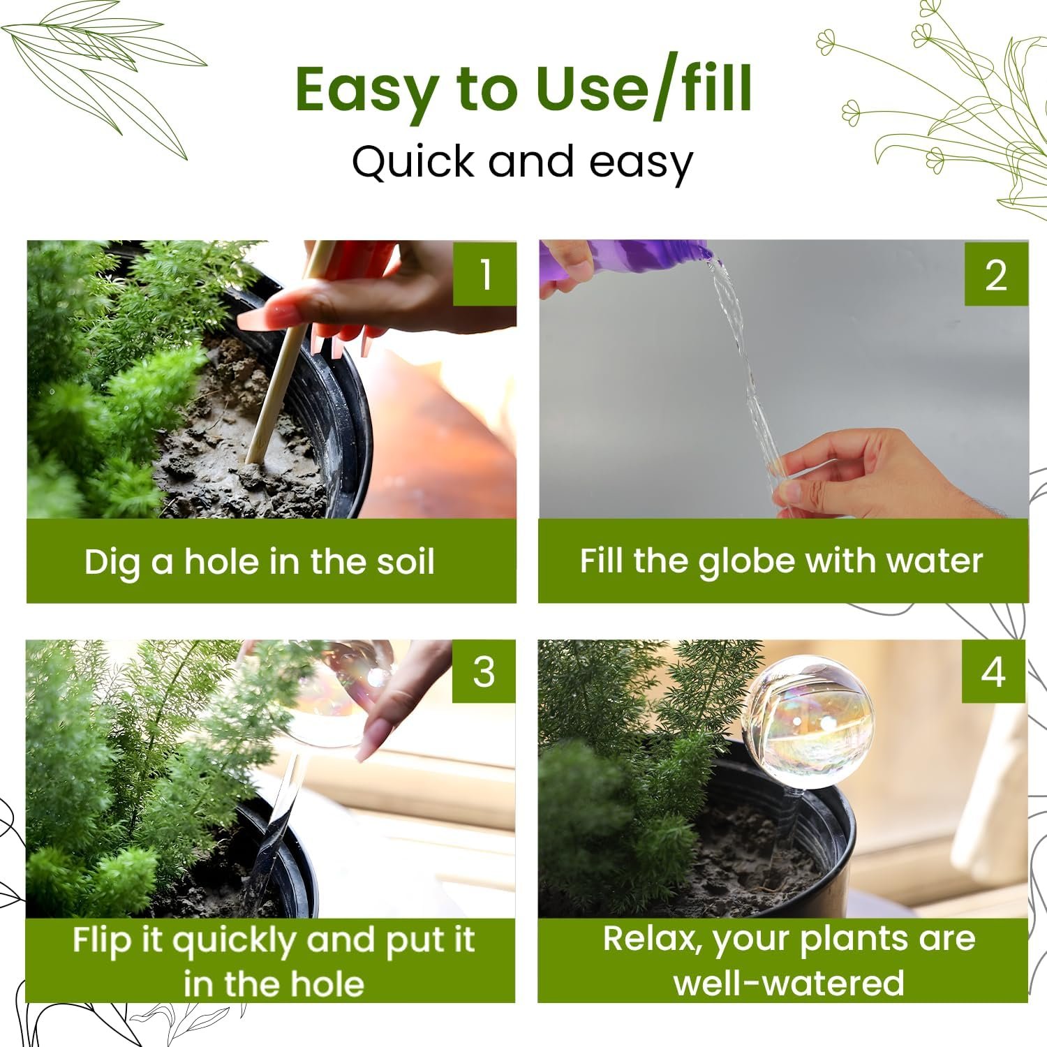 Vacation-Proof Hydration: Ensure your plants stay lush and vibrant even when you’re away with our Glass Globe Watering System, designed for effortless watering during vacations.