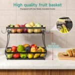 2 Tier Fruit Basket for Kitchen with 2 Banana Hangers, Detachable Metal Fruit Bowl for Kitchen Counter for Fruit and Vegetable Storage, Large Capacity Tiered Fruit Tray