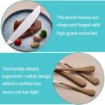 【Modern and Elegant】- Highly mirror polished without rough burr, Nice shine and bring a high-grade and modern metallic texture, The curved design of the handle makes it more elegant, The blade of the knife is sharp enough to cut steak easily