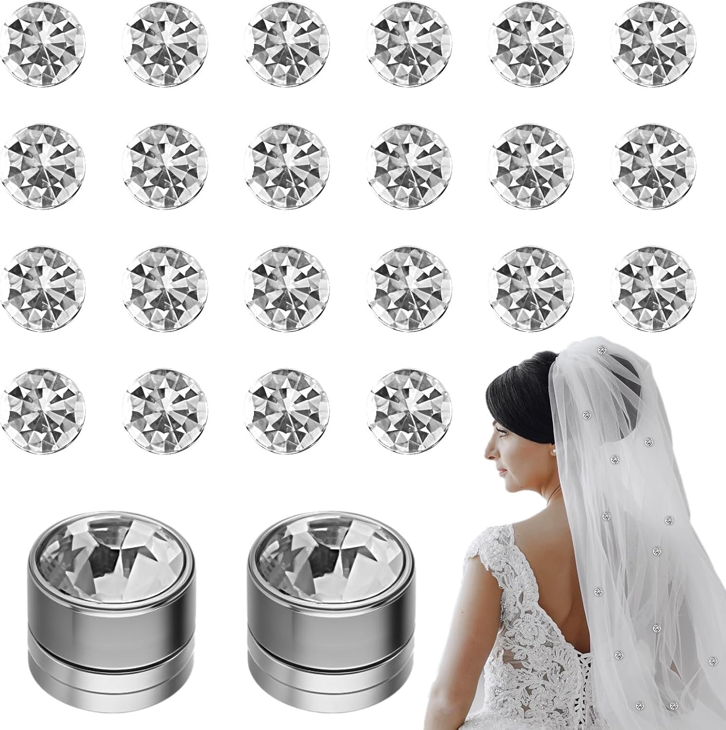 24Pcs Veil Weights Invisible, Magnetic Diamonds Cathedral Wedding Veil Weights, 0.2” Dia Shiny Hijab Magnets, Small Rhinestones Veil Accessories for Bridal Dress Women Clothes Scarves