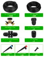 Extensive Coverage with Long Tubing: This drip irrigation system features a 50FT 1/2″ main tube and 200FT 1/4″ branch tubing, offering superior coverage for large gardens, raised beds, and greenhouses. Perfect for a watering system for outdoor plants that ensures every corner of your garden stays hydrated