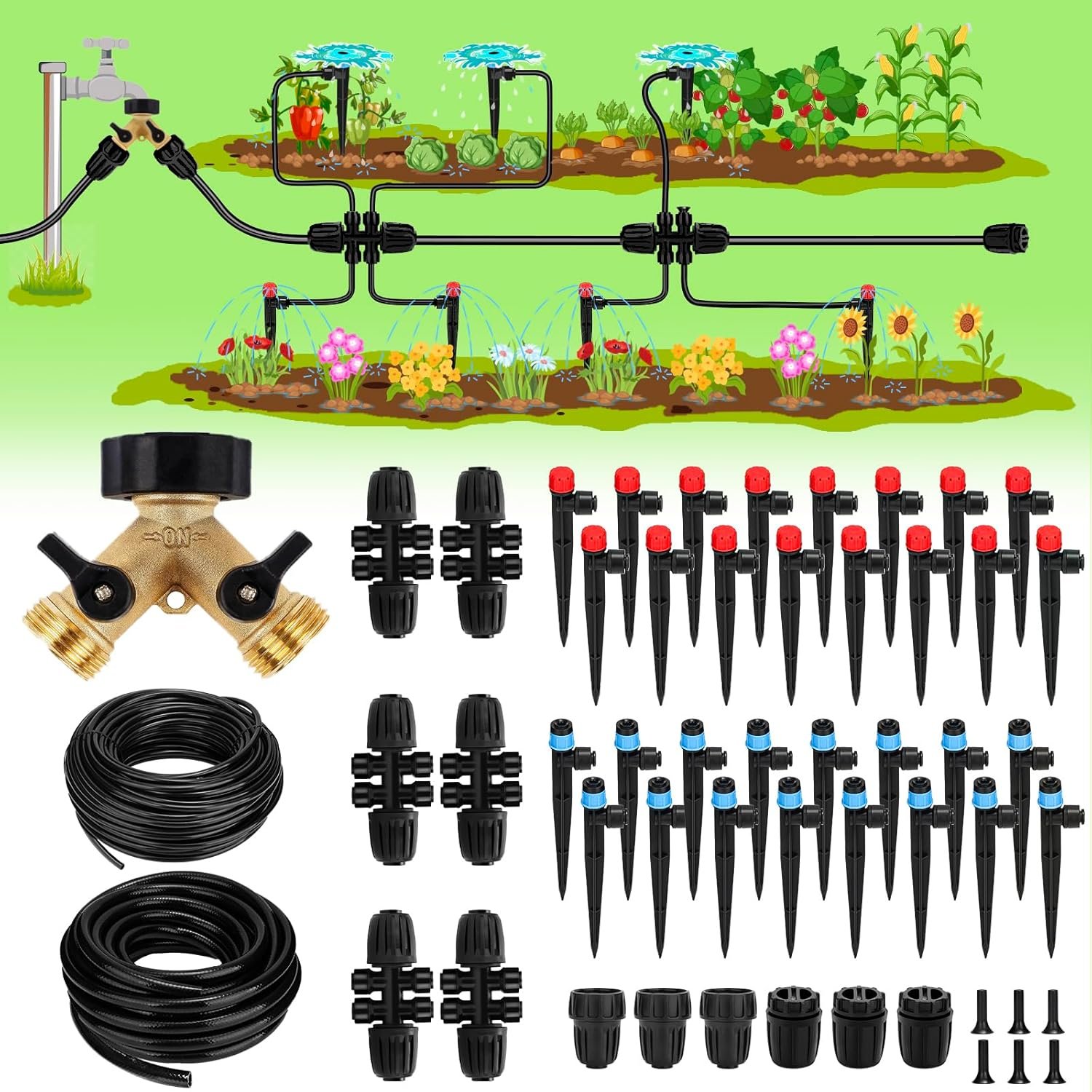Premium Brass Splitter for Durability: Equipped with a high-quality brass splitter, this garden drip irrigation system ensures long-lasting performance and efficient water distribution. Say goodbye to cheap plastic Splitter that break easily