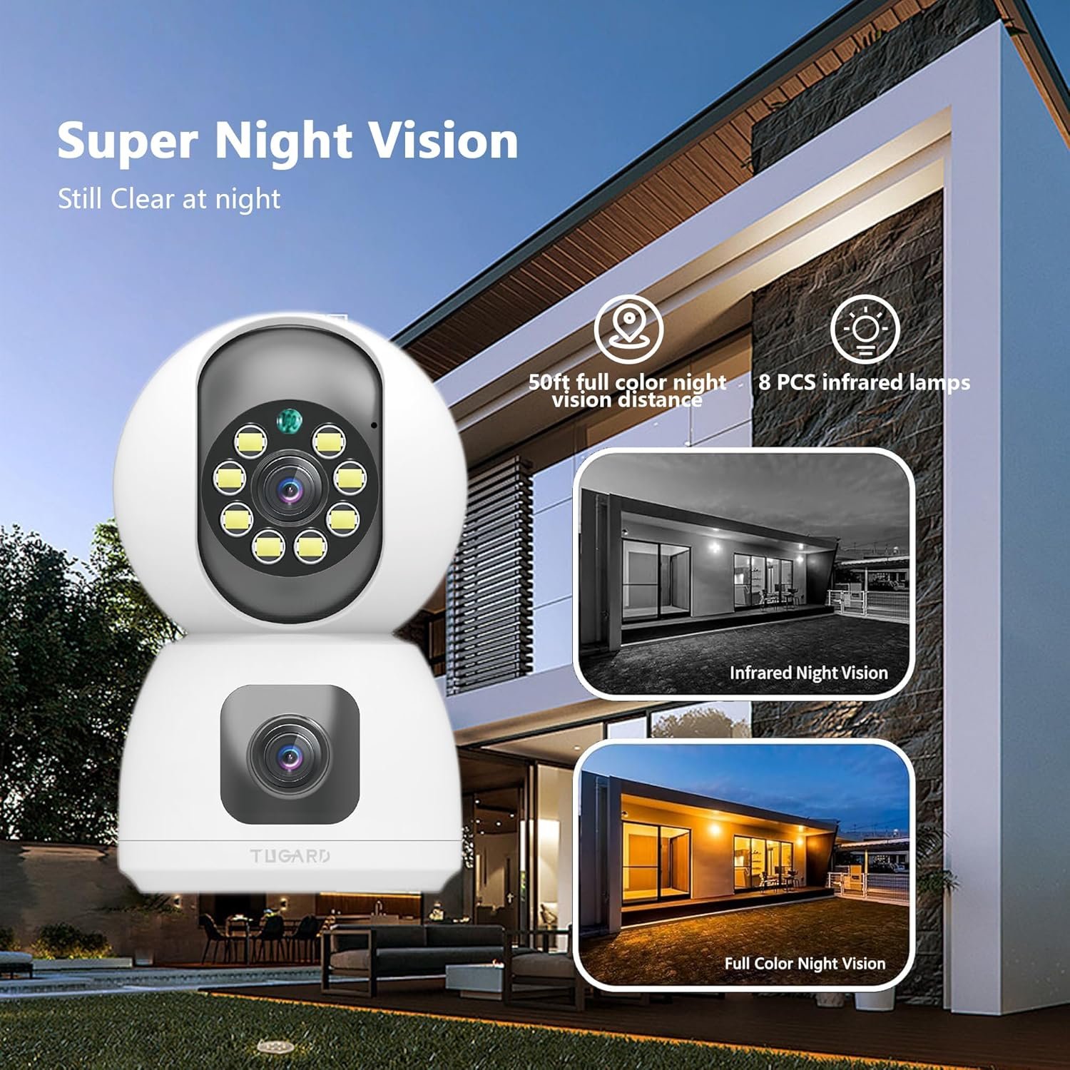 ✅ IR NIGHT VISION AND TWO-WAY AUDIO: TUGARD Home Security Camera features IR night vision, which ensures a clear image even in low light conditions. With two-way audio, you can communicate with your family or warn potential intruders anytime, anywhere.