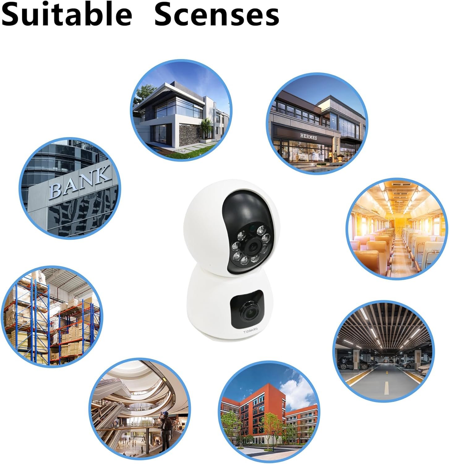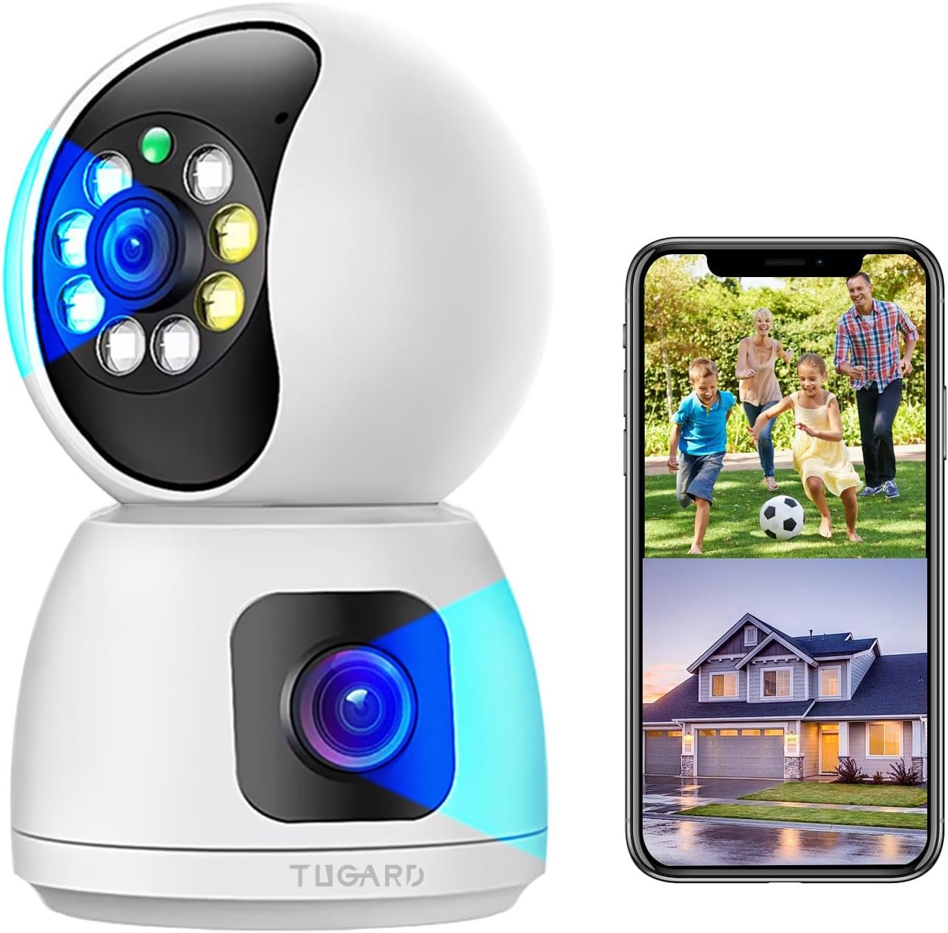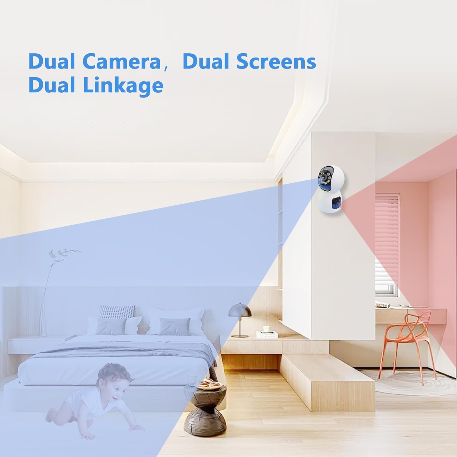 2MP Cameras for Home Security, 1080P Dual Lens Indoor Security Camera Pet/Dog/Baby Camera,2.4GHz WiFi Cameras Without Subscription,2-Way Audio,IR Night Vision,Support 24H All-Weather Recording