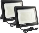 2Pack LED Flood Light Outdoor,100W LED Work Light 11000lm with 6FT US Plug,IP66 Waterproof Exterior Security Lights,6000K Daylight White Outside Floodlights Slim Design for Playground Yard
