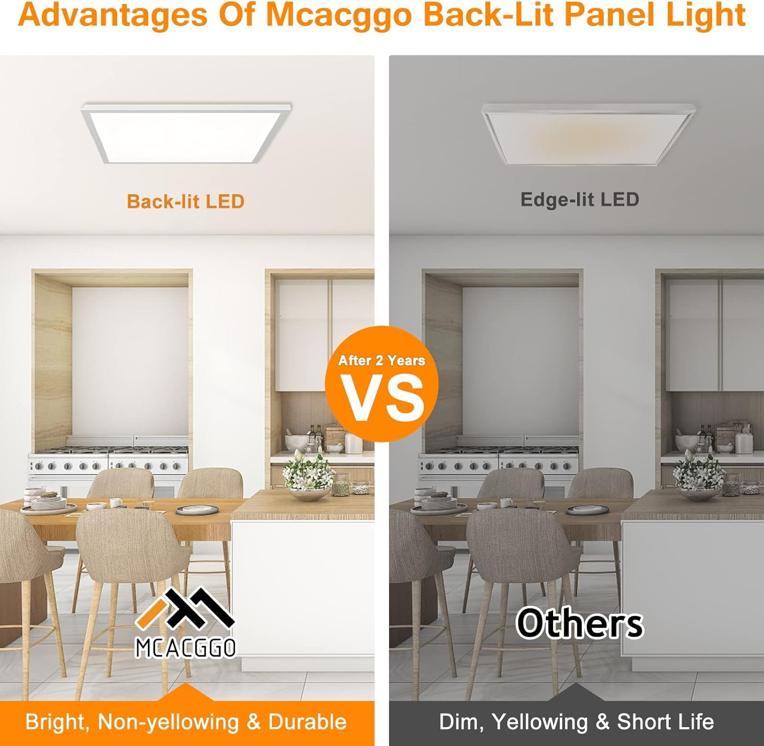 Triac Smooth Dimming: Integrated LED panel lights body, 0%-100% smooth dimming, compatible with Triac dimmers switch. Mcacggo’s square 2×2 surface mount led light gives you a variety of great light experiences with 80+ color reproduction