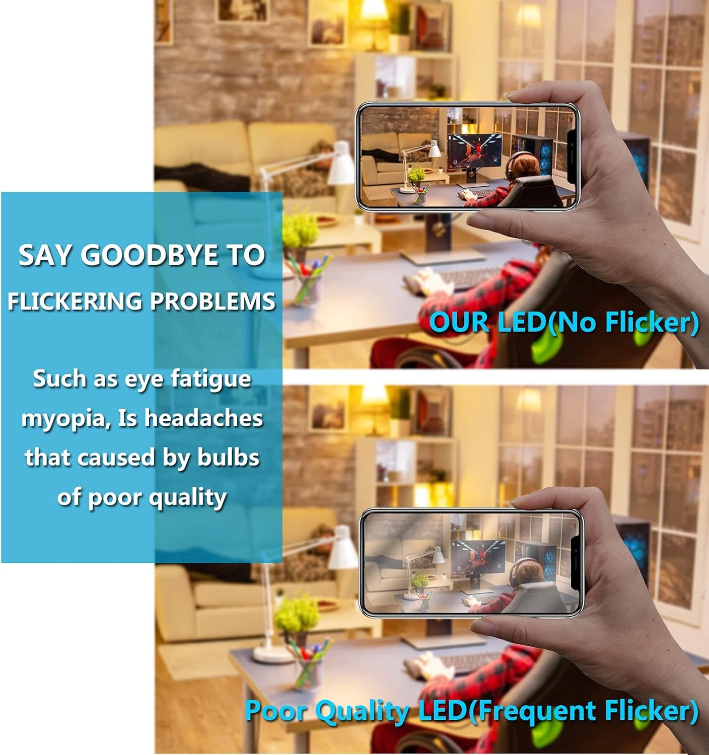 No flicker, no dazzle, no breakable parts, meanwhile very healthy to your eye. No lead or mercury, no IR radiation.