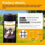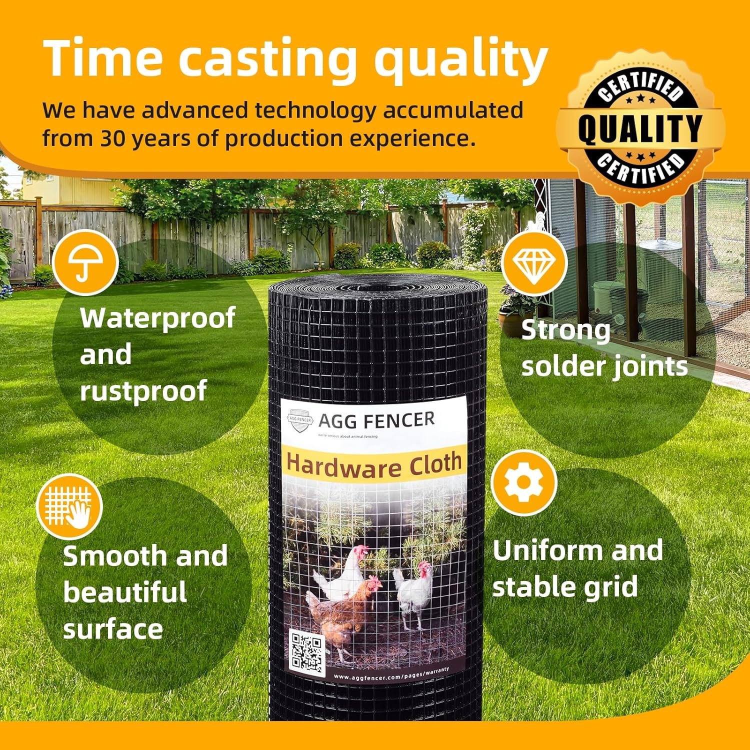 36in x 50ft Black Hardware Cloth 1/2 inch 19Ga PVC Coated Wire Mesh Vinyl Coated Fence, Welded Metal Chicken Wire Fencing Roll, Garden Plant Fencing, for Chicken Coop and Home Improvement