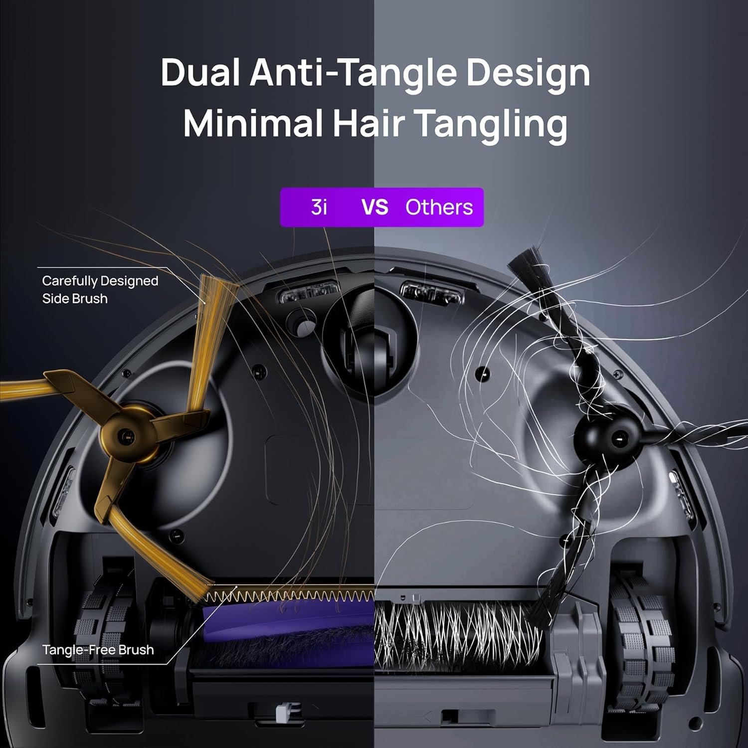 Dual Anti-Tangle Design: The double-comb anti-tangle main brush allows the S10 Ultra robot vacuum to easily deal with various tangles. During cleaning, the blocking comb and brush work together to effectively prevent both human and pet hair from tangling on the main brush. After returning to the base station, the robot reverses the main brush, activates the detangling comb, and increases suction to draw the hair into the dustbin