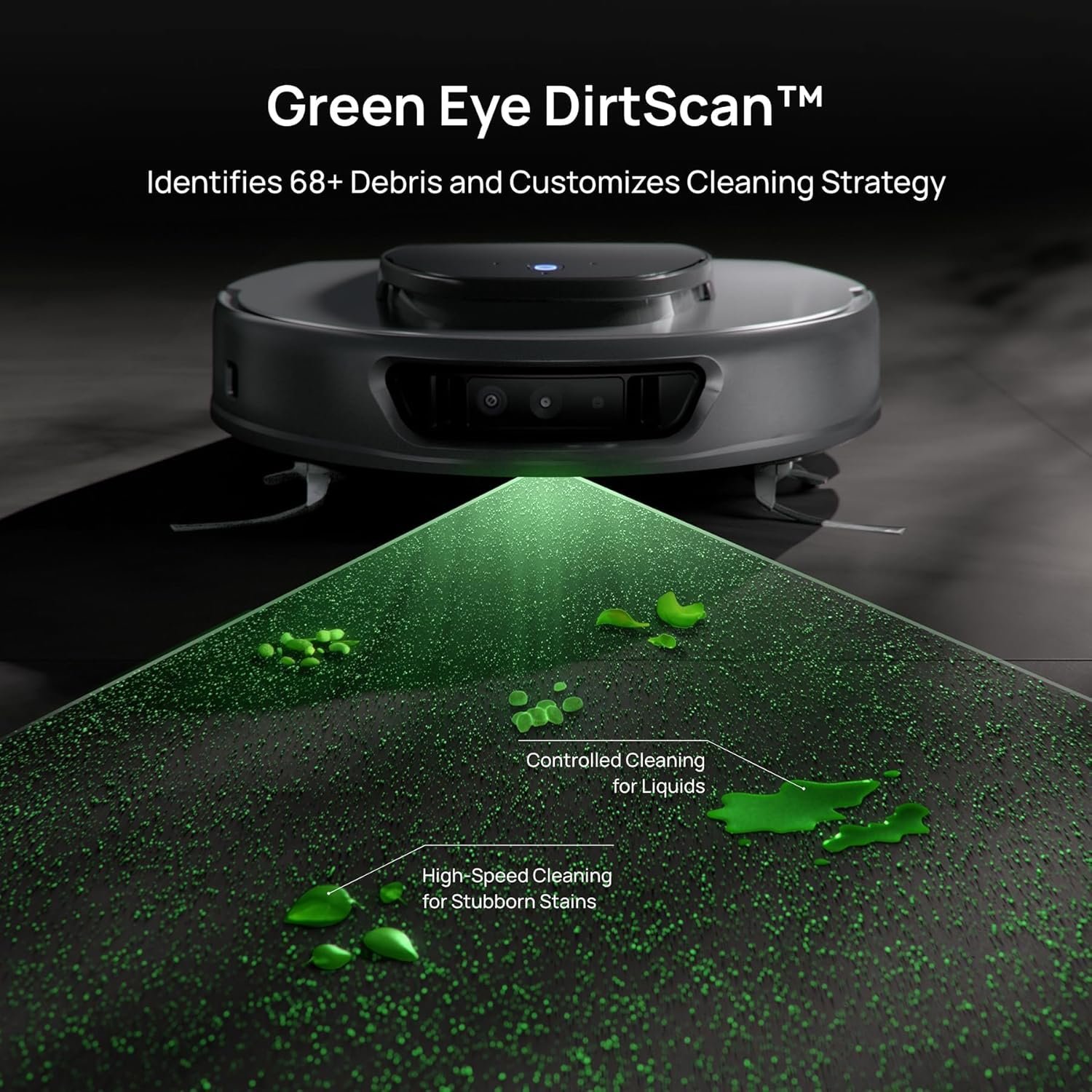 DirtScan Cleaning Strategy: DirtScan allows S10 Ultra Robot Vacuum to see and think for itself with green lights and advanced AI algorithms to clean in the most optimal strategy, achieving perfect obstacle avoidance. Combined with ApexVision dToF LIDAR, Dual 3D Structured Light ensures more efficient and accurate navigation, deep clean even in the dark