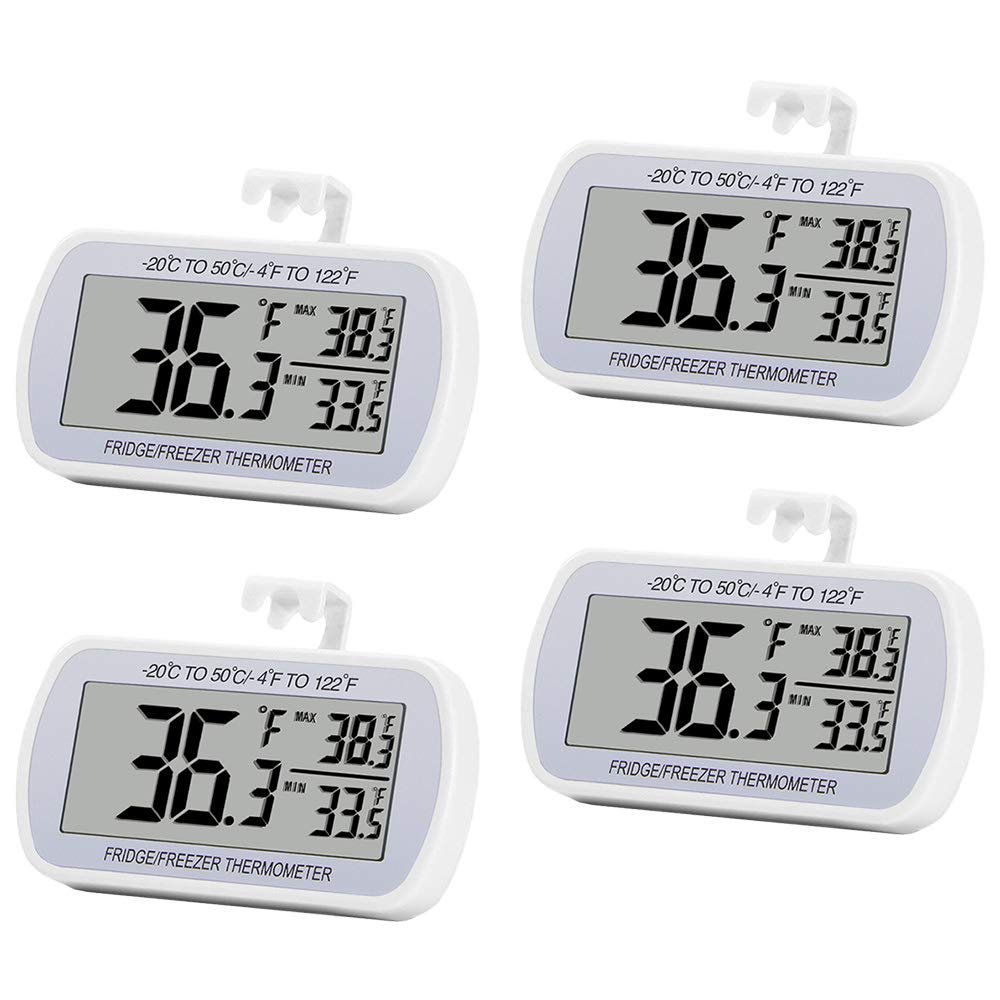 4 Pack Digital Refrigerator Thermometer Fridge Freezer Room Thermometer Waterproof Large LCD Display Max/Min Record Function, White