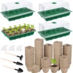 4 Pack Seed Starter Tray Kit, 120 Square Seed Peat Pots for Seedlings with Plants Labels, Planting Tools, Plastic Growing Germination Trays with Lids for Indoor Outdoor Gardening, Green