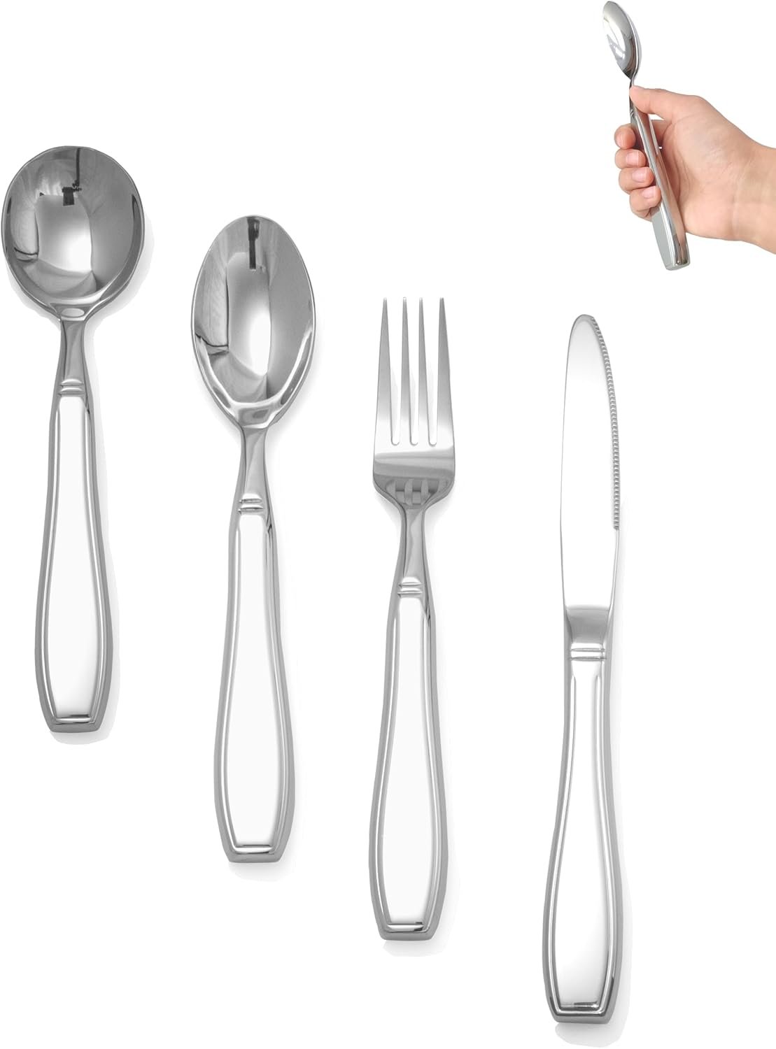 DISCRETE WEIGHTED DESIGN FOR HAND TREMORS AND PARKINSON’S PATIENTS – Each 7oz weighted utensil looks like premium silverware while providing stability and control for individuals with hand tremors, Parkinson’s, or limited hand strength. Maintains dignity and independence during mealtimes.