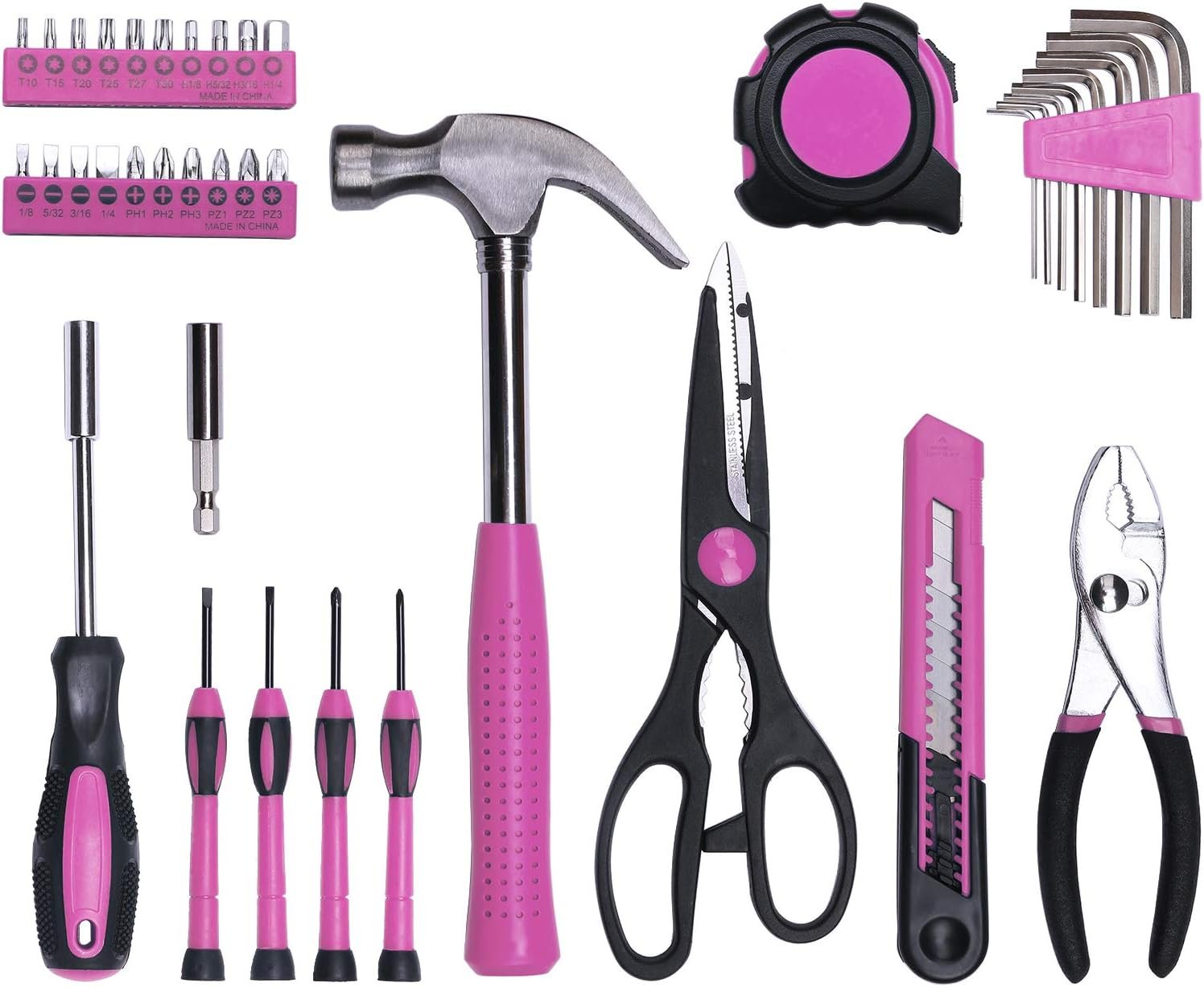 40-Piece All Purpose Household Pink Tool Kit for Girls, Ladies and Women – Includes All Essential Tools for Home, Garage, Office and College Dormitory Use