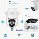 4G LTE Cellular Security Camera Wireless Outdoor, No WiFi Needed, 2K Color Night Vision, 360° View Pan/Tilt, 2 Way Talk, PIR Motion Sensor, Built-in SIM Card (Support Verizon/AT&T/T-Mobile)