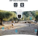 360° Coverage & Preset Points: Enjoy complete peace of mind with the 355° horizontal and 90° vertical pan-and-tilt feature, ensuring full 360° surveillance coverage. Set up to 5 preset points for no blind spots, and zoom in with 3X digital zoom for detailed monitoring. Perfect for all-around protection and securing your space
