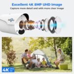 【 4K HD Image+ Wide View Angle 121°+ WDR Function 】 Ultra HD Resolution 8MP/4K .2.8mm Lens, Field of View (H): 112.9° (V): 59.1° (D): 121.2°. Wider view angle 121° to enlarge surveillance area and AI Function Wide Dynamic Range to create and capture a balance and finest image no matter in a environment with low or exposure light