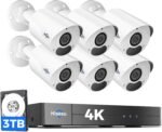 [4K HD+121° View Angle] Hiseeu 4K PoE Security Camera System, Home Security System w/6Pcs 8MP Security Camera Outdoor, Human Detect, IP67 Waterproof, 100ft Night Vision, 3TB HDD, 7/24 Record