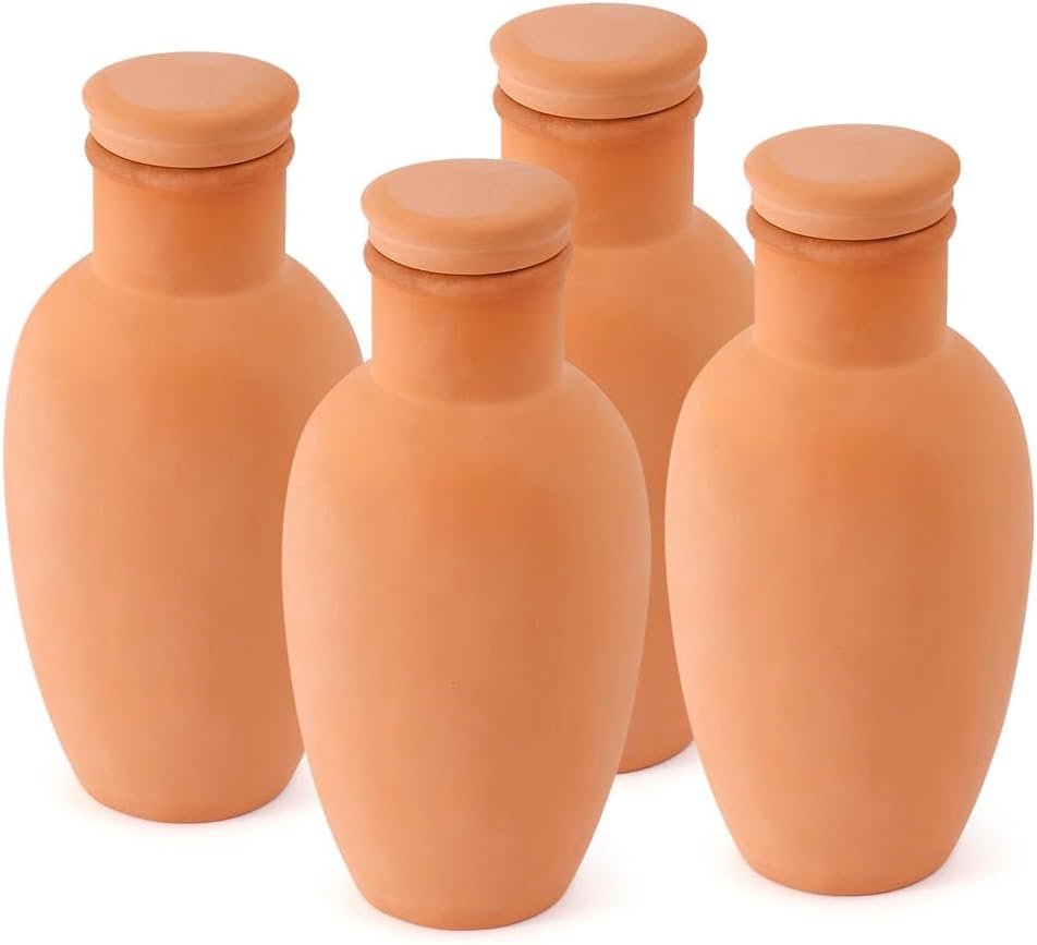 4pcs Ollas 3.1×3.1×6inch Terracotta Watering Pots Terracotta Self Watering Planter Insert Self Watering Planter with Terra Cotta Clay Irrigation Pots watering system for outdoor plants Irrigation