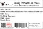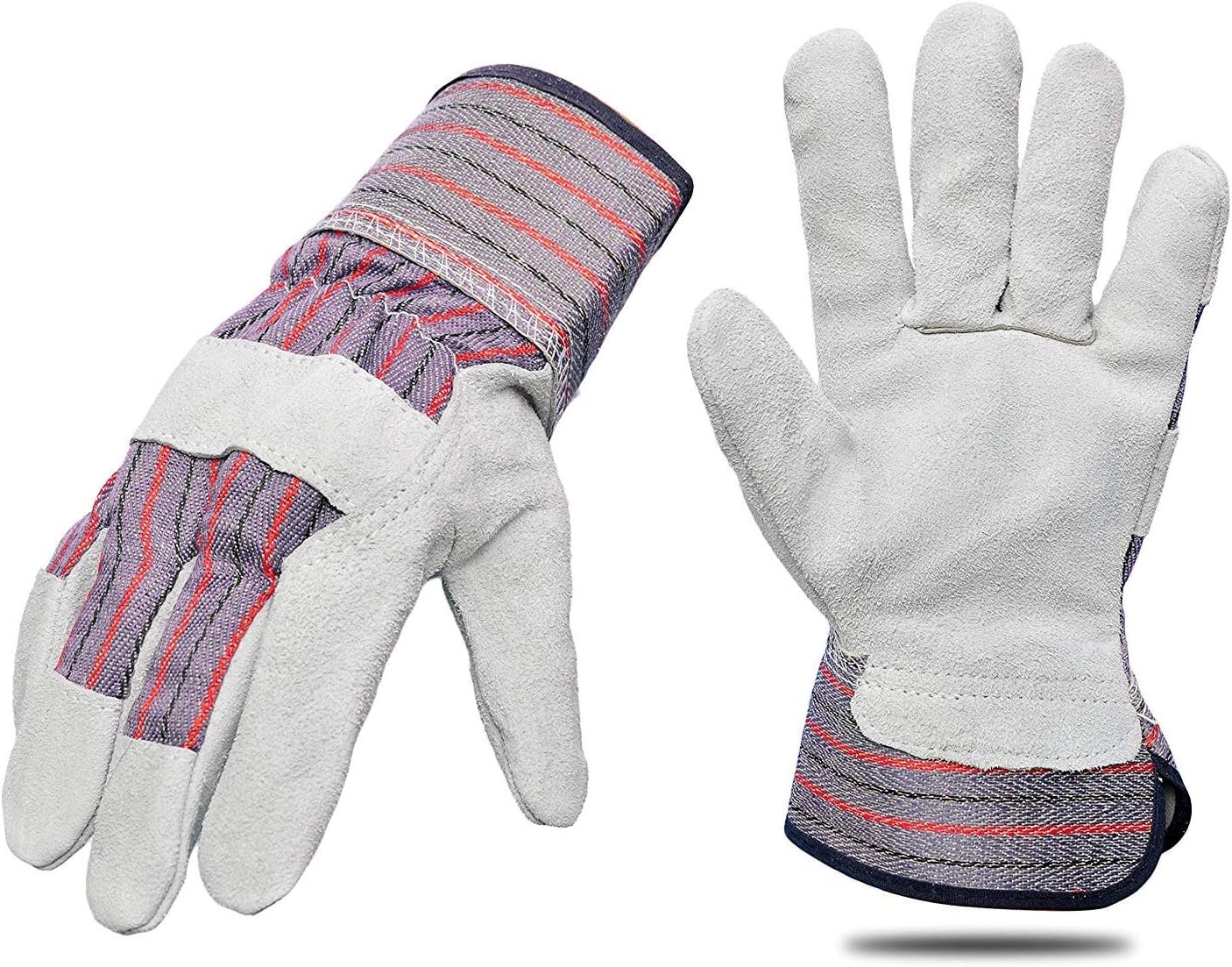 5 Pair Pack Leather Palm Work Gloves Cowhide Leather Suede Finish A Grade Premium