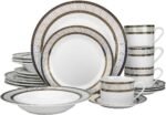 Elegant high-end and affordable 57-Piece Dinnerware Set for 8, Crafted from Fine Porcelain with 24K Gold Embellishments