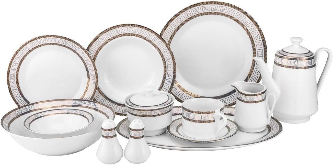 57-pc Banquet Dinnerware Set, Luxury Tableware Dining Service for 8 (Greek Key Dark)