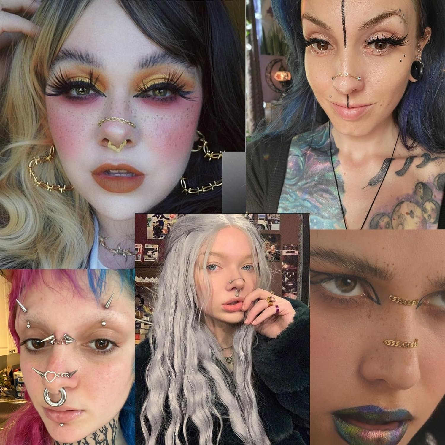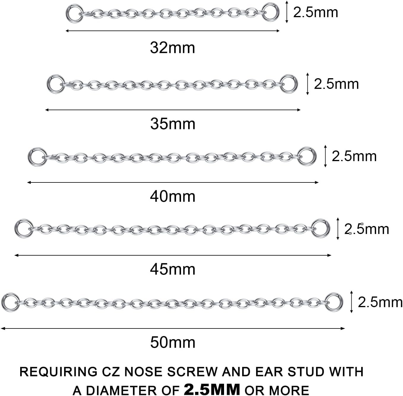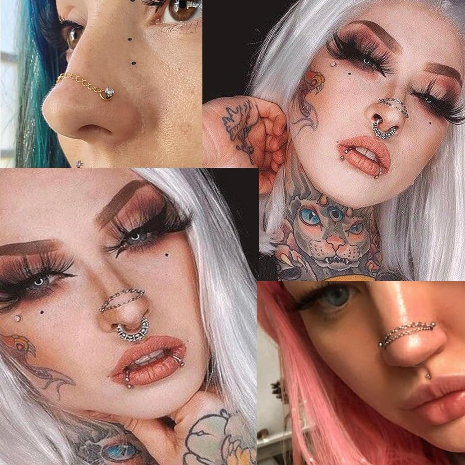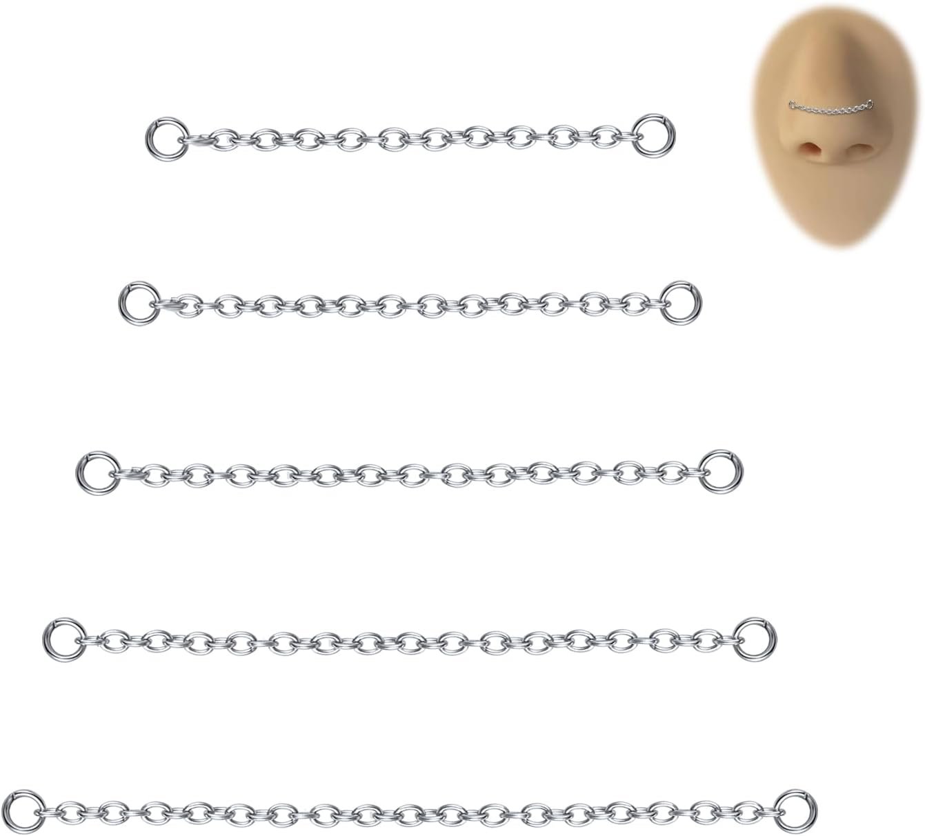 5PCS Nose Chain Surgical Steel Across Top Nose Piercing Jewelry – Double Nostril Bridge Jewelry for Women & Men, Black, Gold, Silver