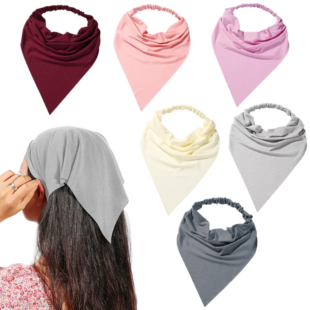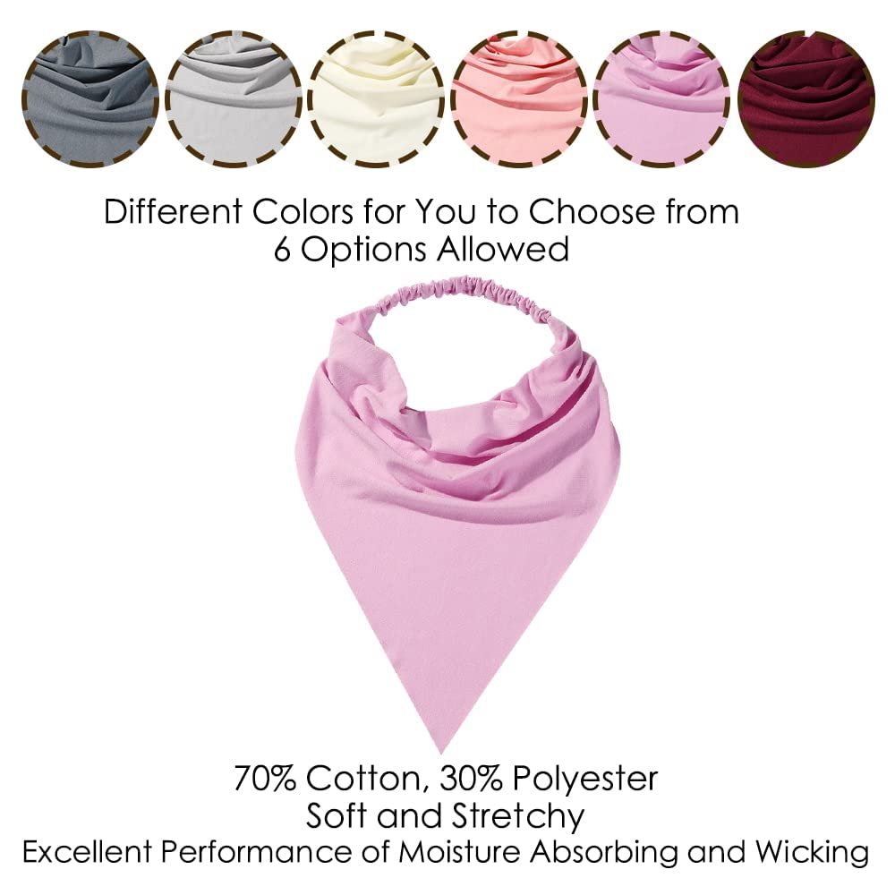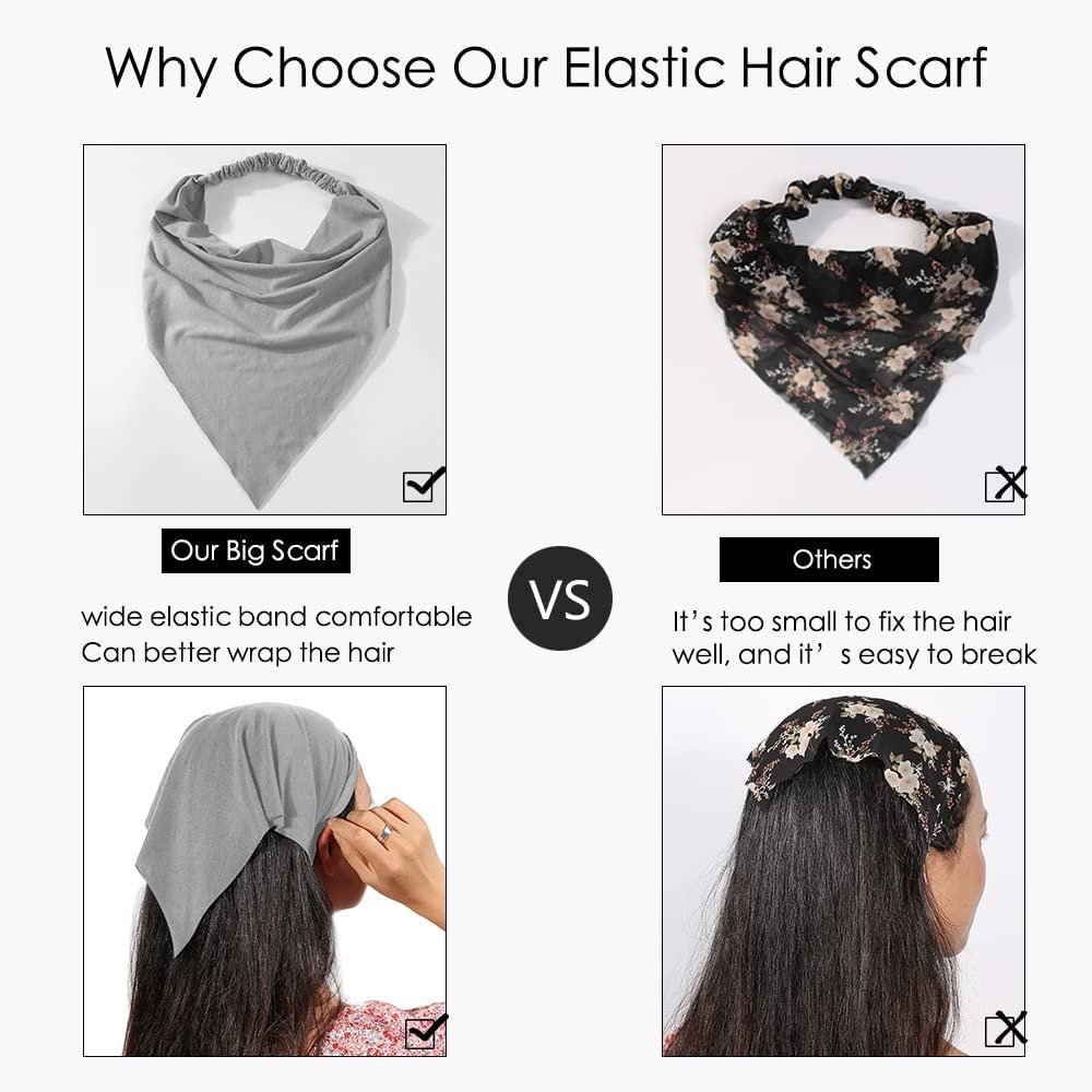 6 Pack Hair Scarf Headband for Women – Elastic Hair Kerchief Large Boho Triangle Bandana Head Scarf with Clips Non Slip Solid Color Headbands Hair Scarves for Teen Girls