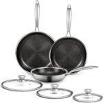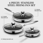 6 Pieces Stainless Steel Frying Pan Set with Lids, Honeycomb Nonstick Frying Pan Set 3 Pcs,Induction Skillet Set Egg Omelette Frying Pan Set W/Lid, Induction Compatible, PFOA Free
