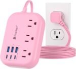 【9 in 1 Pink Power Strip with USB ports】-The USB C pink travel extension cord features 3AC outlets and 3 USB-C 3 USB-A ports (5V/4.8A/24W in total), could charge 9 devices simultaneously.This 6 USB power strip pink would charge your cellphone,laptop,tablet,cameras etc,suitable for home,office,cruise ship,travel and dorm room