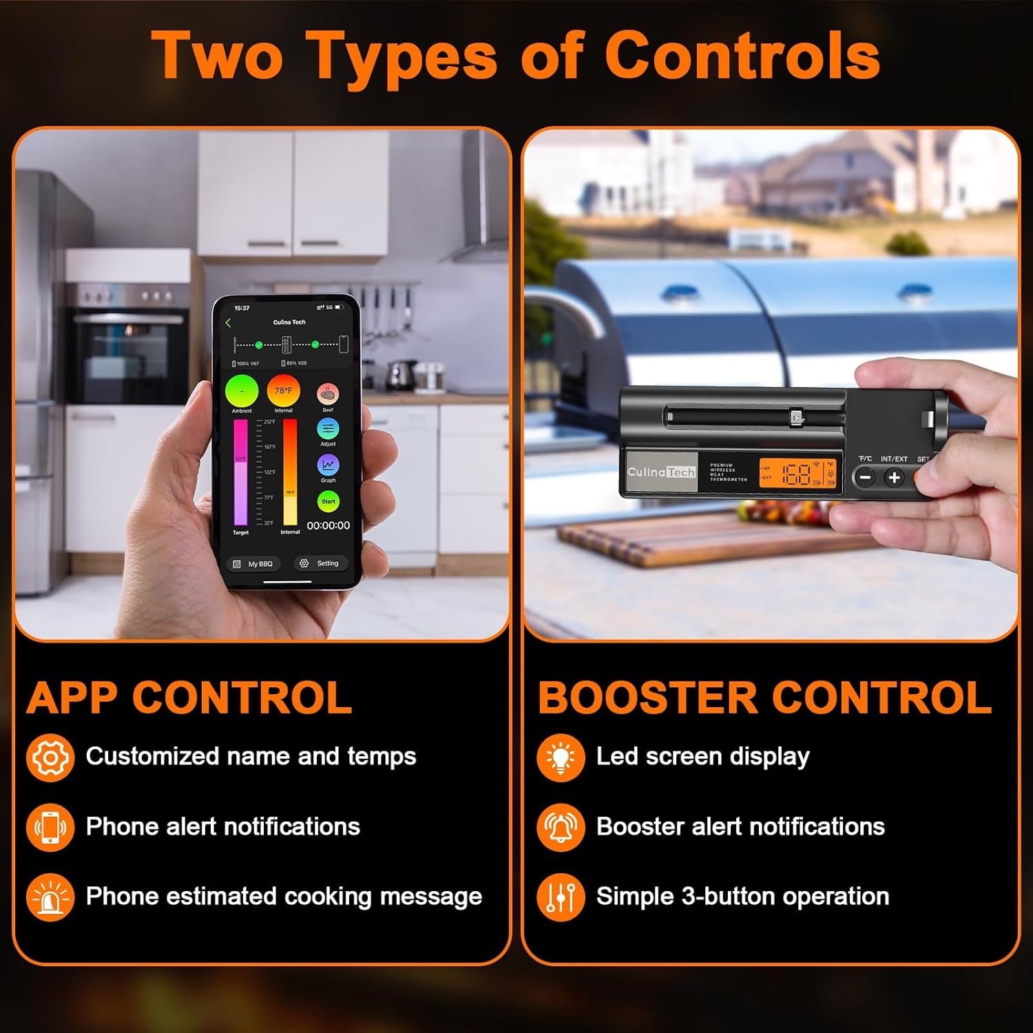 【Two Types of Control】- Mobile APP control, intelligent recommendation of cooking options, easy to solve the cooking problem; BOOSTER control, LCD screen, three buttons on the booster to set the target temperature. Provide a variety of options to more people