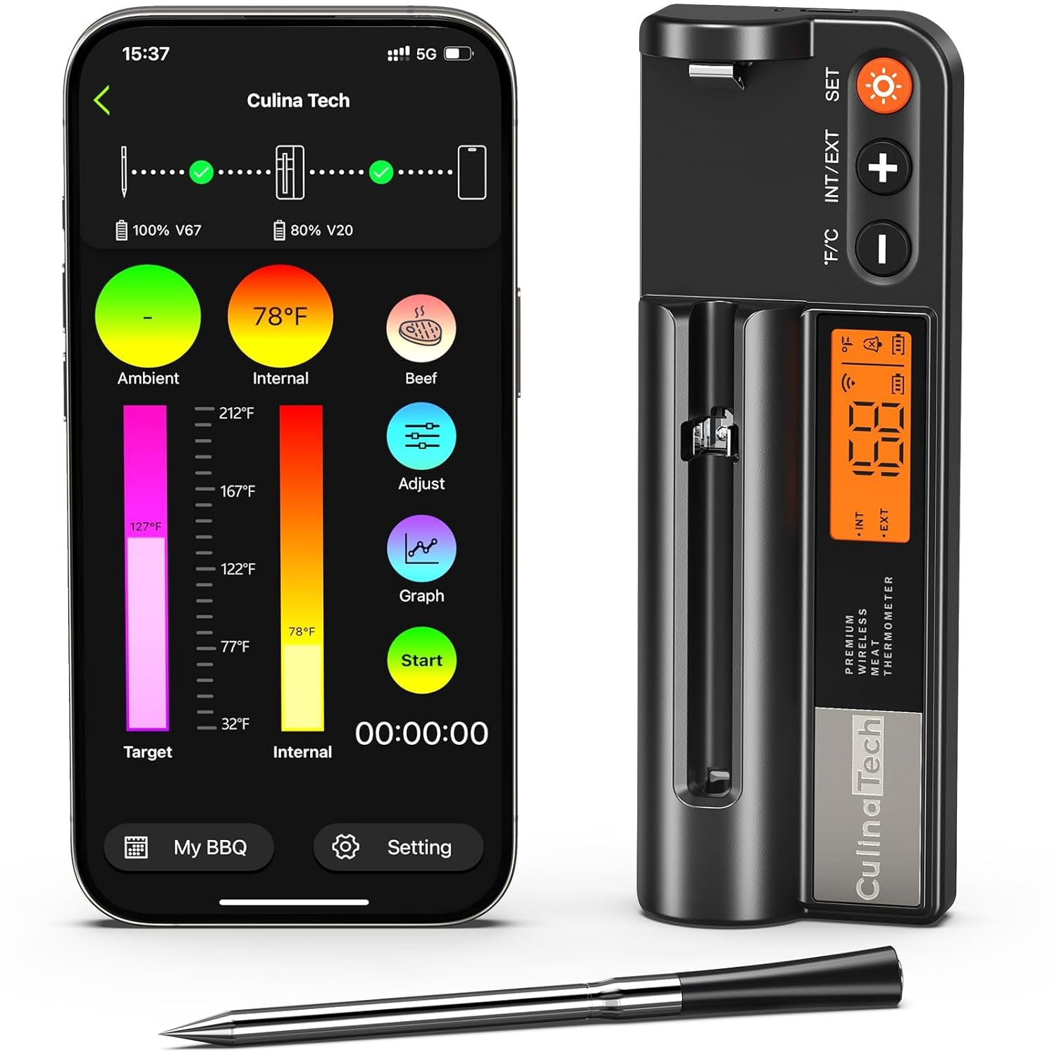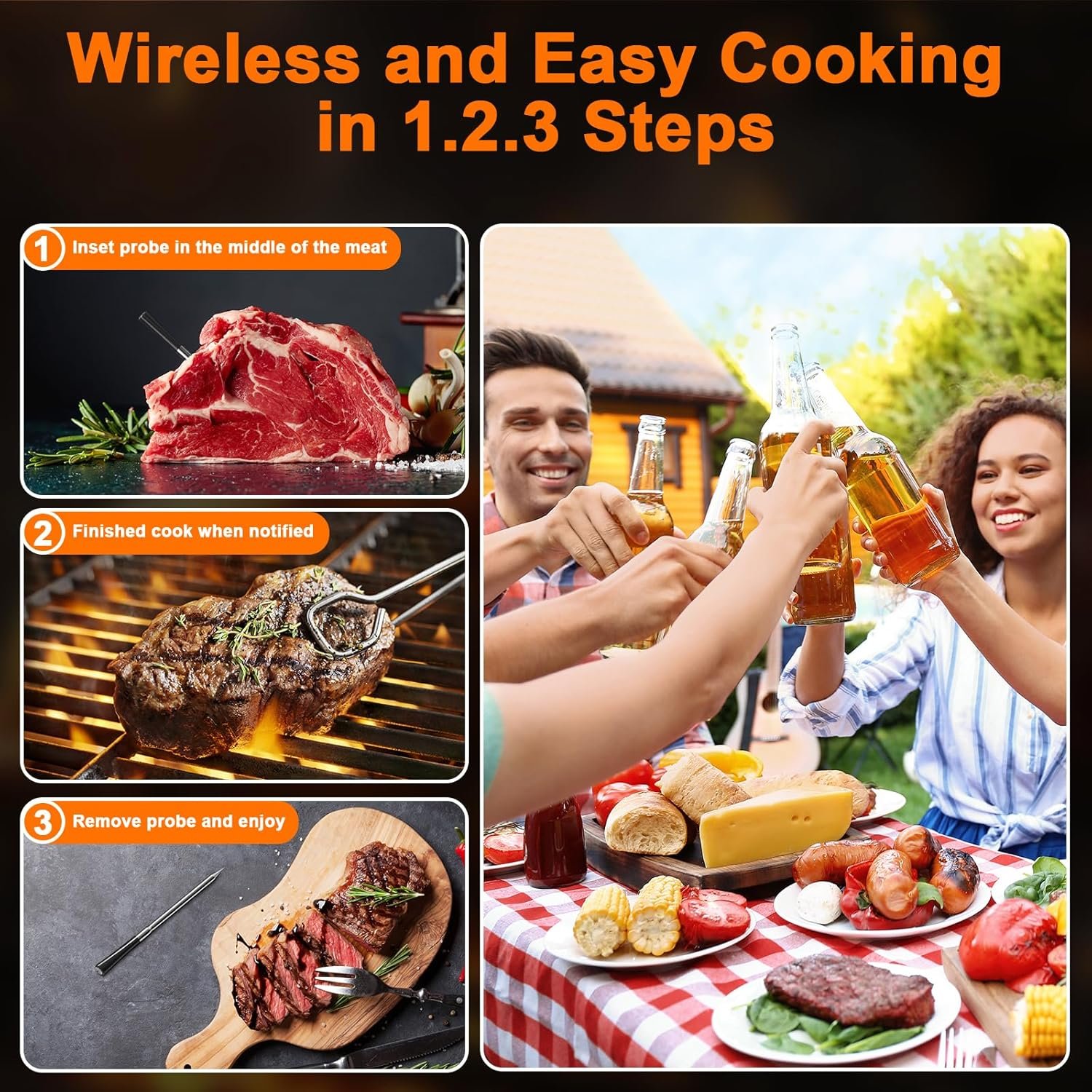 【100% Wire-Free Probe】- Say goodbye to annoying wires! 100% Wire-Free Meat Probe is easier to use and store, more suitable for ovens than other wired thermometers