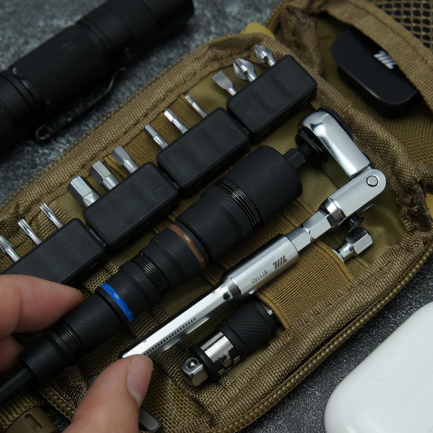 Experience the perfect blend of portability and utility with our 711L Hex End Flex Head Ratchet Wrench. This compact tool combines professional-grade functionality with pocket-sized convenience, making it practical for both technicians and DIY enthusiasts. The ultra-compact design allows this tool to slip easily into any pocket or EDC kit without adding bulk. Despite its small size, it offers complete versatility through standard 1/4″ hex bit compatibility, enabling you to handle a wide range of fastening tasks with a single tool. A key feature is the flex head design, allowing you to navigate tight spaces and awkward angles effectively. The T-handle configuration provides additional leverage when needed, making it capable of handling both light adjustments and more demanding tasks. Crafted in Taiwan using quality materials, this ratchet wrench is built for reliability and longevity. The solid construction ensures consistent performance during regular use, while the practical design delivers smooth operation in various applications. For those seeking a balanced combination of portability and functionality in their everyday carry toolkit, this versatile ratchet wrench delivers just that.