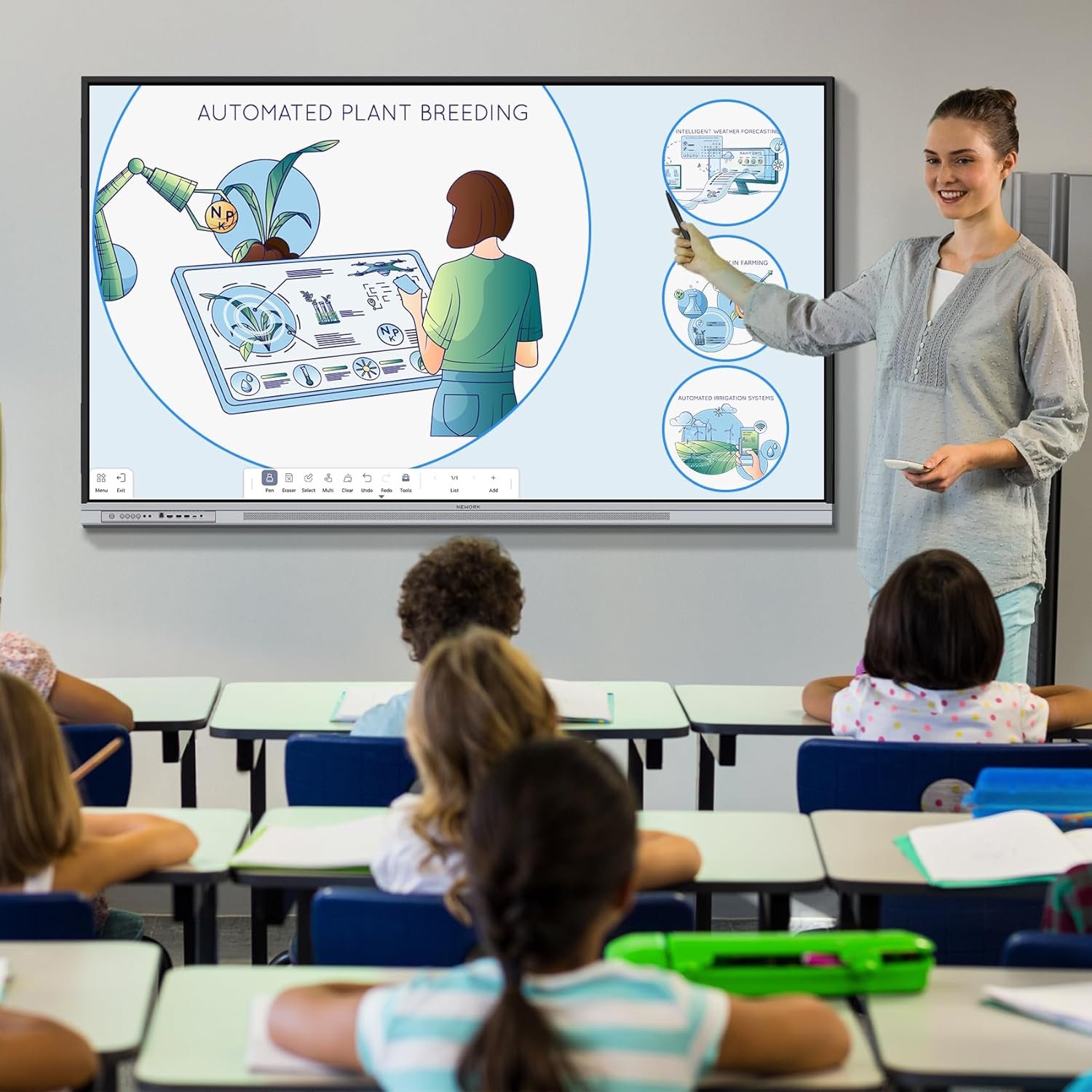 【Comprehensive User-Friendly Software】The built-in EShare wireless casting allows up to 16 devices to mirror screens simultaneously, making it easy for teachers to share lesson content or for business professionals to present reports without messy cables. The interactive display supports real-time annotations, media insertions, and interactive tools like rulers and geometric shapes, Ideal for STEM education, project planning, and dynamic brainstorming sessions. The Floating Toolbar ensures quick access to essential tools, keeping lessons and meetings efficient