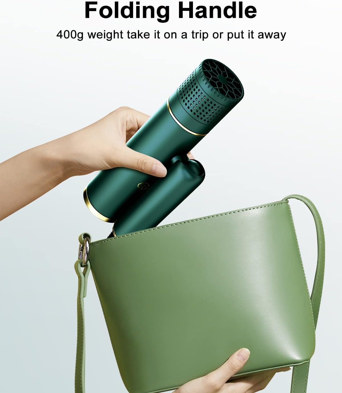 7MAGIC Fast-Drying Hair Dryer, Foldable Ionic with Storage Bag for Travel, Lightweight Portable Hairdryer for Women & Men, Negative, 2 Heating/Cold/2 Speed Settings, Green