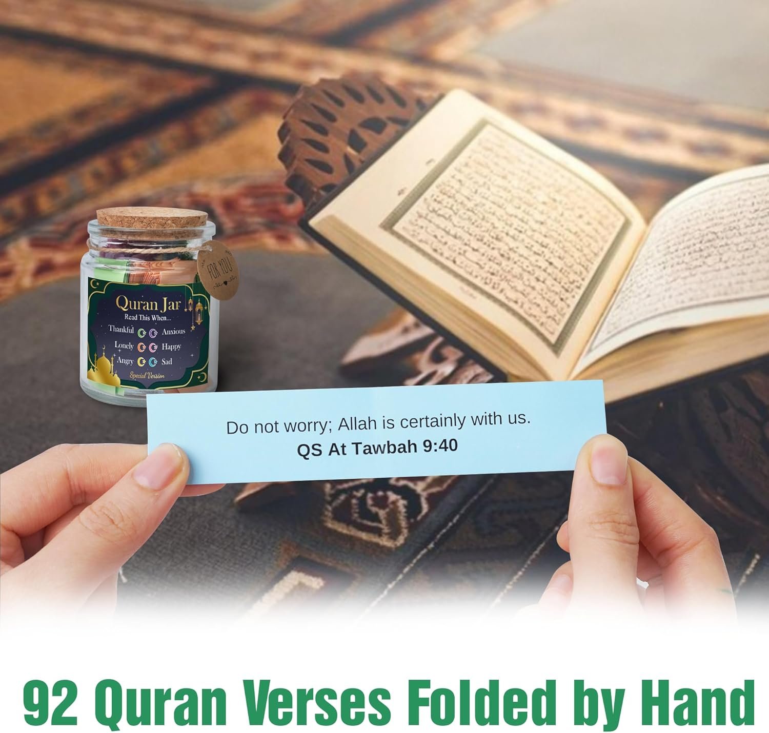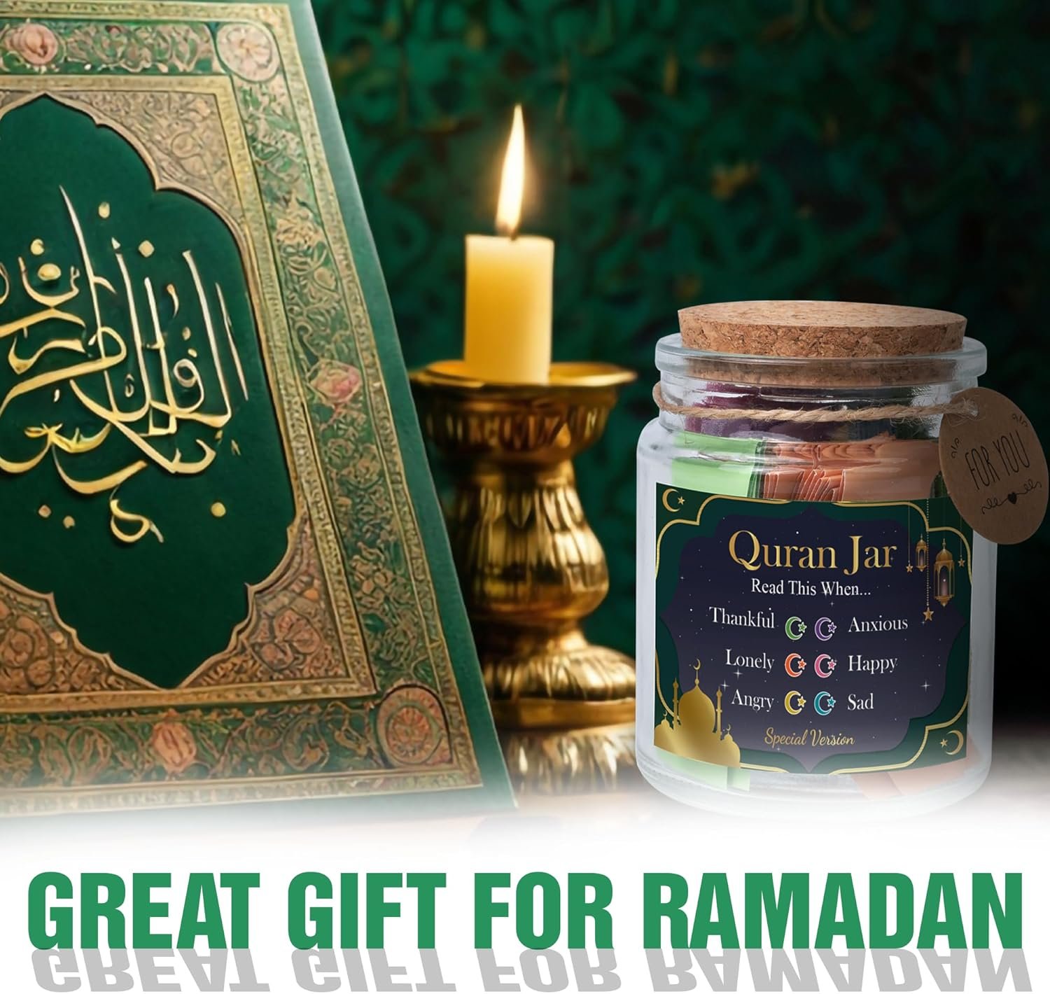 92 Quran Verse Jar – Islamic Decor & Gift Set, Small Quran Verses for Eid, Muslim Gifts for Men & Women, Islam Home Decoration, Spiritual Ramadan Gift