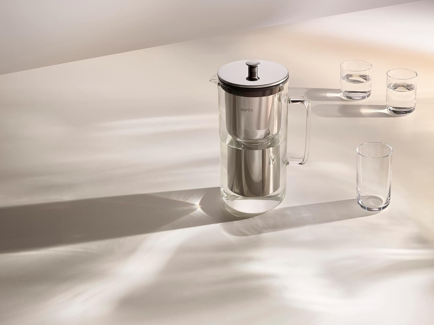 aarke Purifier Glass Water Pitcher, Refillable Stainless Steel Filter, 8-Weeks Performance, BPA-Free, Dishwasher Safe, Pure & Enriched Refill Granules, 1.18L (5 Cups) Capacity