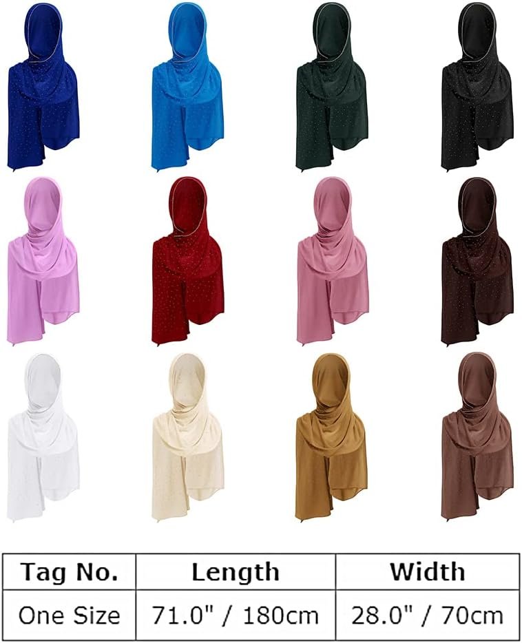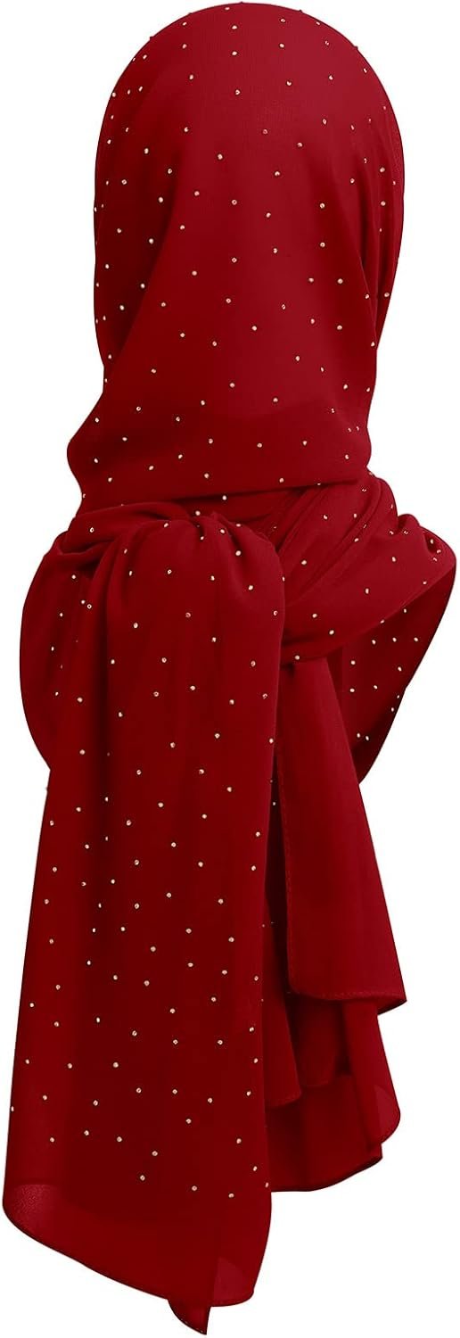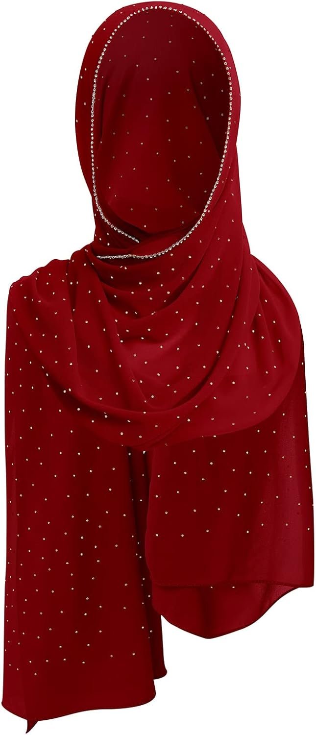 ABAFIP Women’s Chiffon Glitter Rhinestone Long Hijab Scarf Muslim Head Wraps Shawls Full Cover Scarf