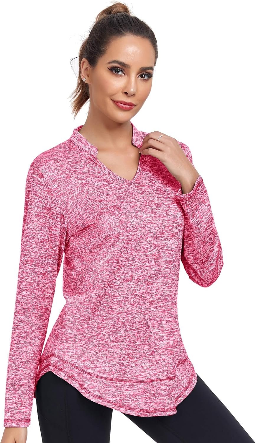 Absttith Women’s Long Sleeve Workout Shirts Running Yoga Tops Athletic V Neck Sport Tee Side Split