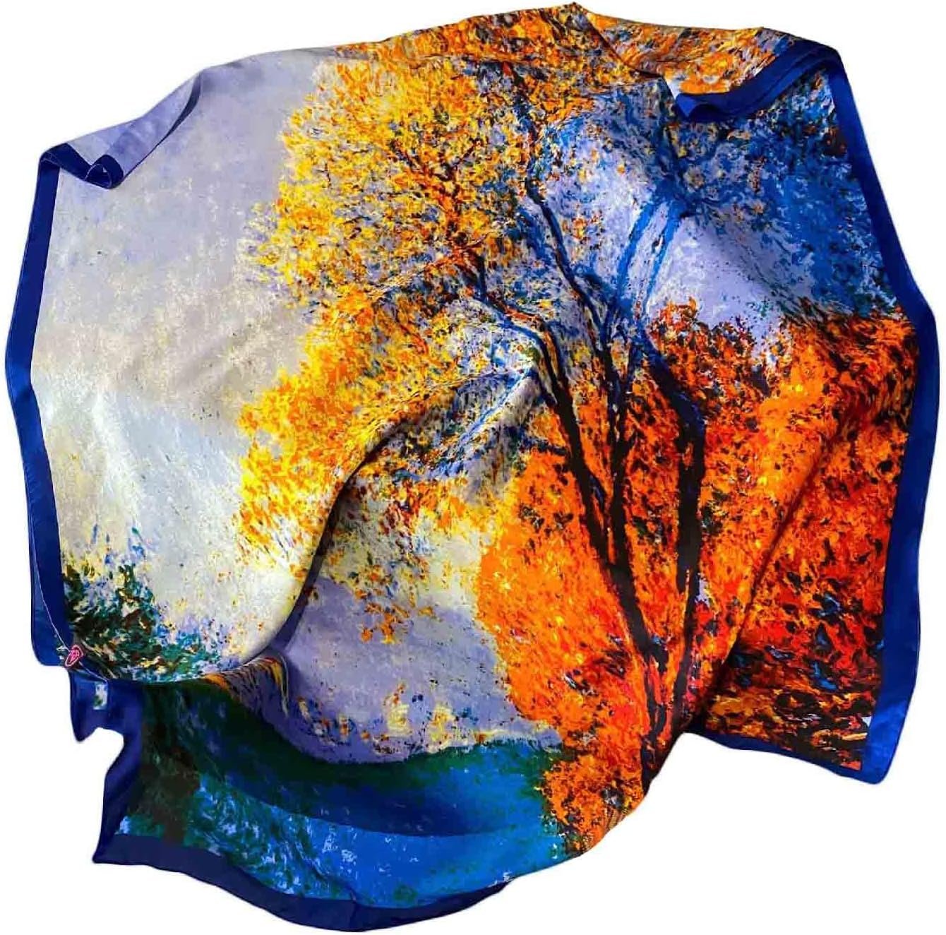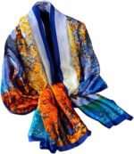 This elegant scarf features an exquisite image in vibrant and rich colors.