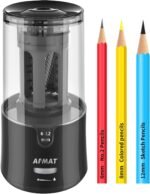FAST PENCIL SHARPENER EVER: With strong motor, this AFMAT electric pencil sharpener can sharpen a new pencil in 5 seconds, and a used pencil in 3 seconds. If you are fed up with those pencil sharpeners which take forever to sharpen a pencil, add this colored pencil sharpener into cart. You can save a lot of time to do other work.
