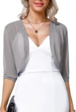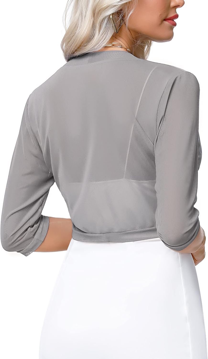 Aiboria Women 3/4 Sleeve Sheer Shrugs Open Front Mesh Bolero Cropped Cardigan