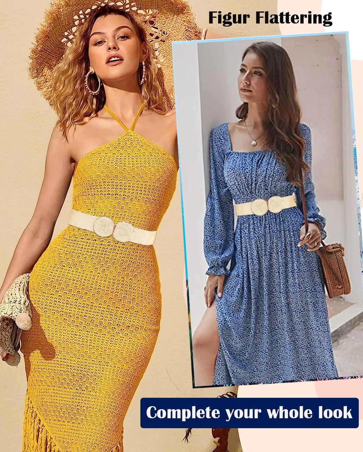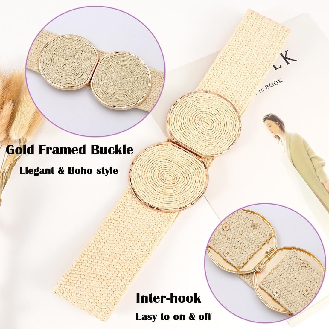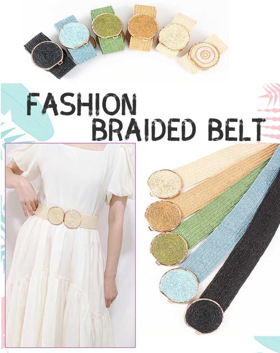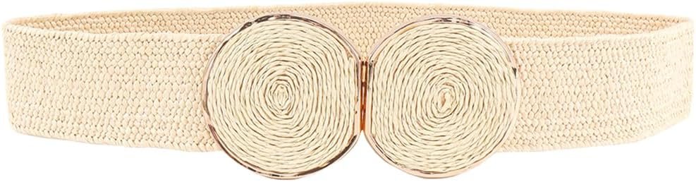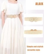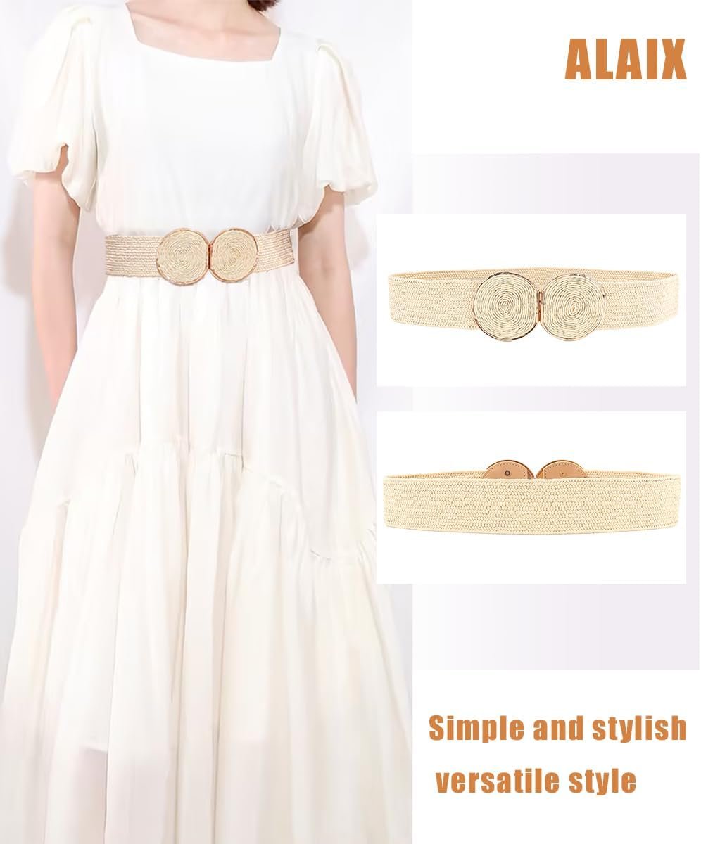 ALAIX Straw Woven Elastic Belt for Women Wide Stretch Waistband for Dress Boho Summer Raffia Belt Dress Belts