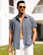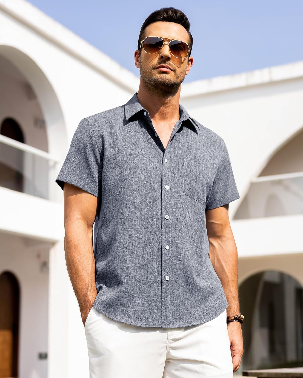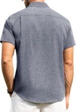 Alimens & Gentle Mens Linen Shirts Short Sleeve Button Down Shirts Wrinkle Free Casual Vacation Beach Summer Tops