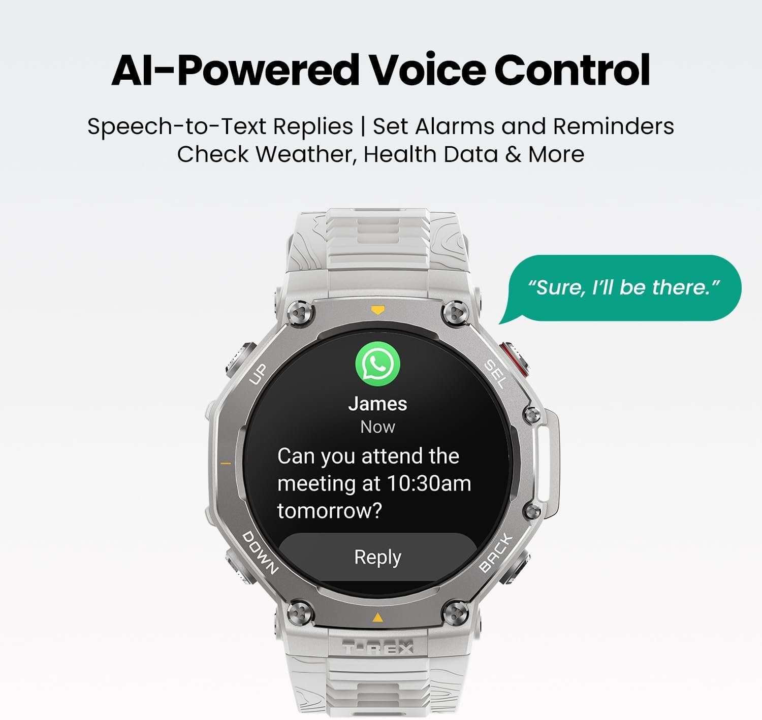 Take Charge with AI: Fully control your smart watch with your voice thanks to Zepp Flow powered by OpenAI’s GPT-4o technology, and send speech-to-text message replies to Android apps like WhatsApp.
