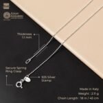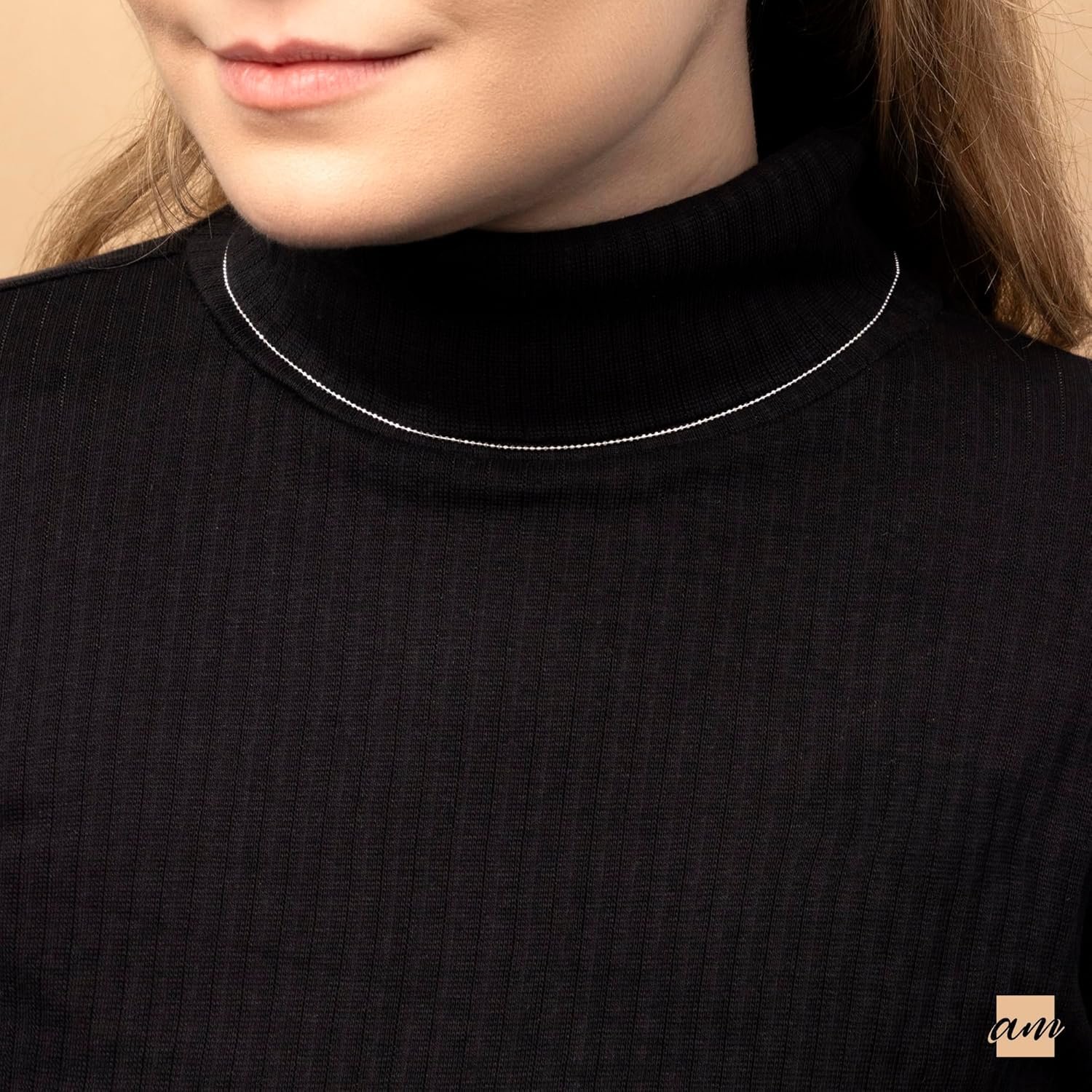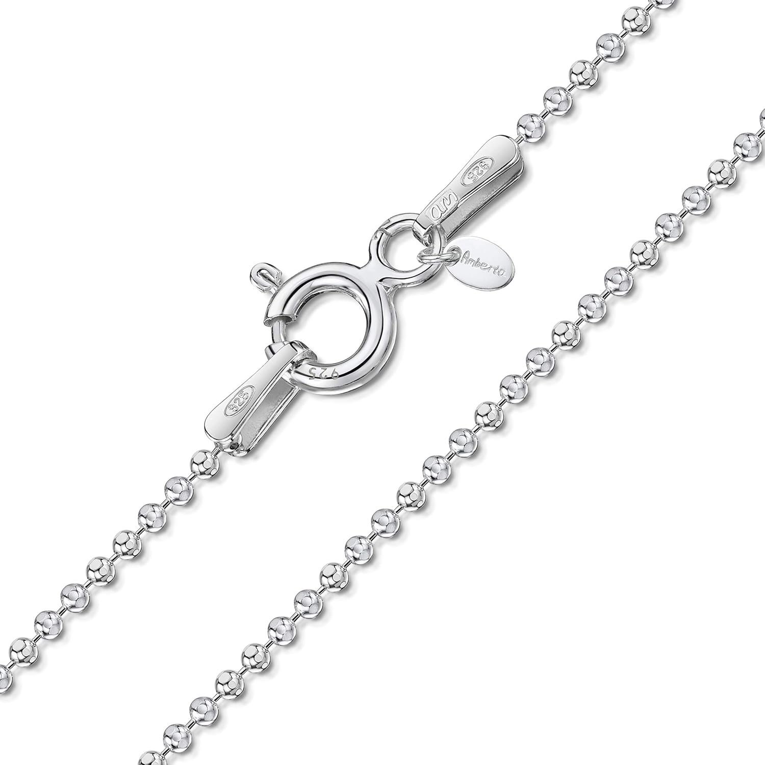 Amberta 925 Sterling Silver 1.1 mm Ball Chain Necklace for Men Women | 925 Silver Chain for Men Women | Silver Dog Tag Chain for Men | Silver Beaded Necklace for Women