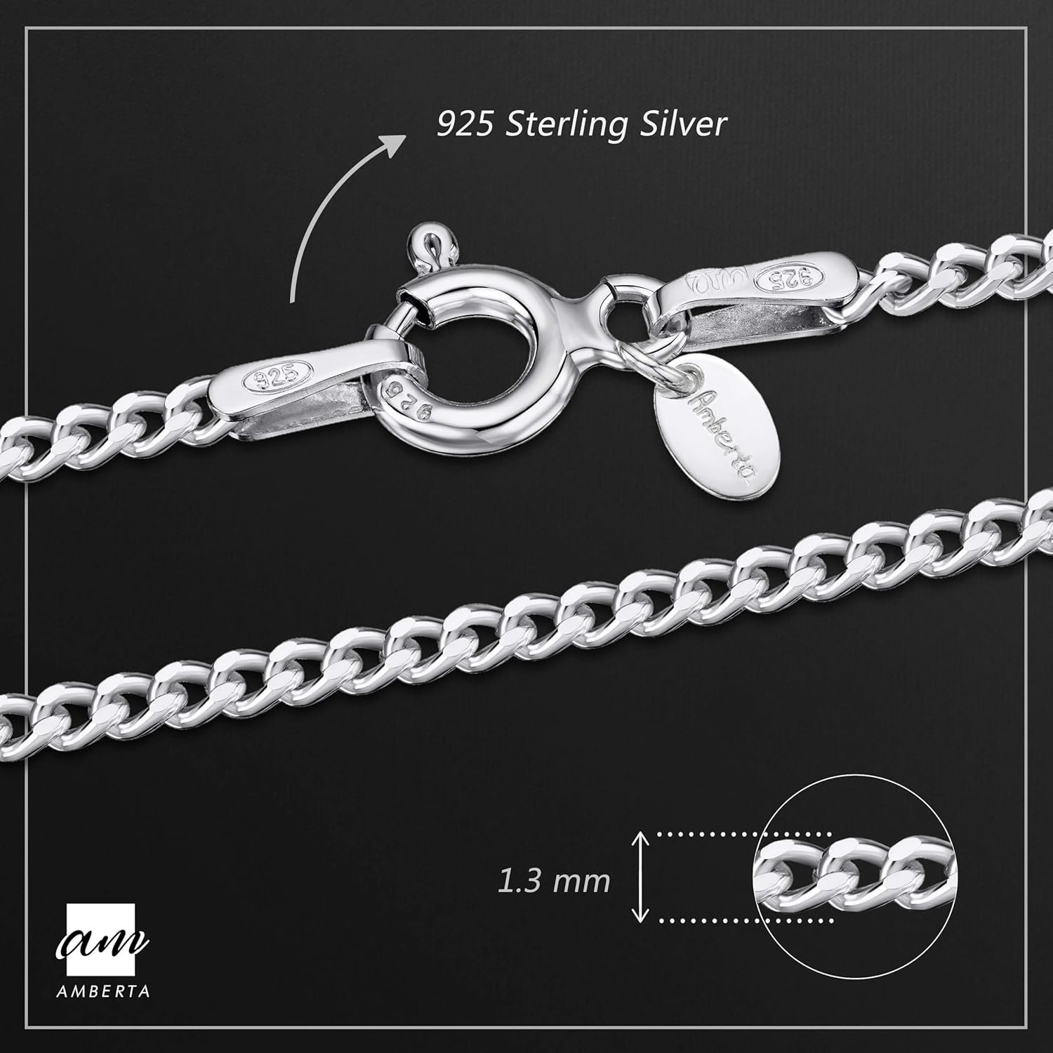 Amberta 925 Sterling Silver 1.5 mm Curb Chain Necklace Various Styles