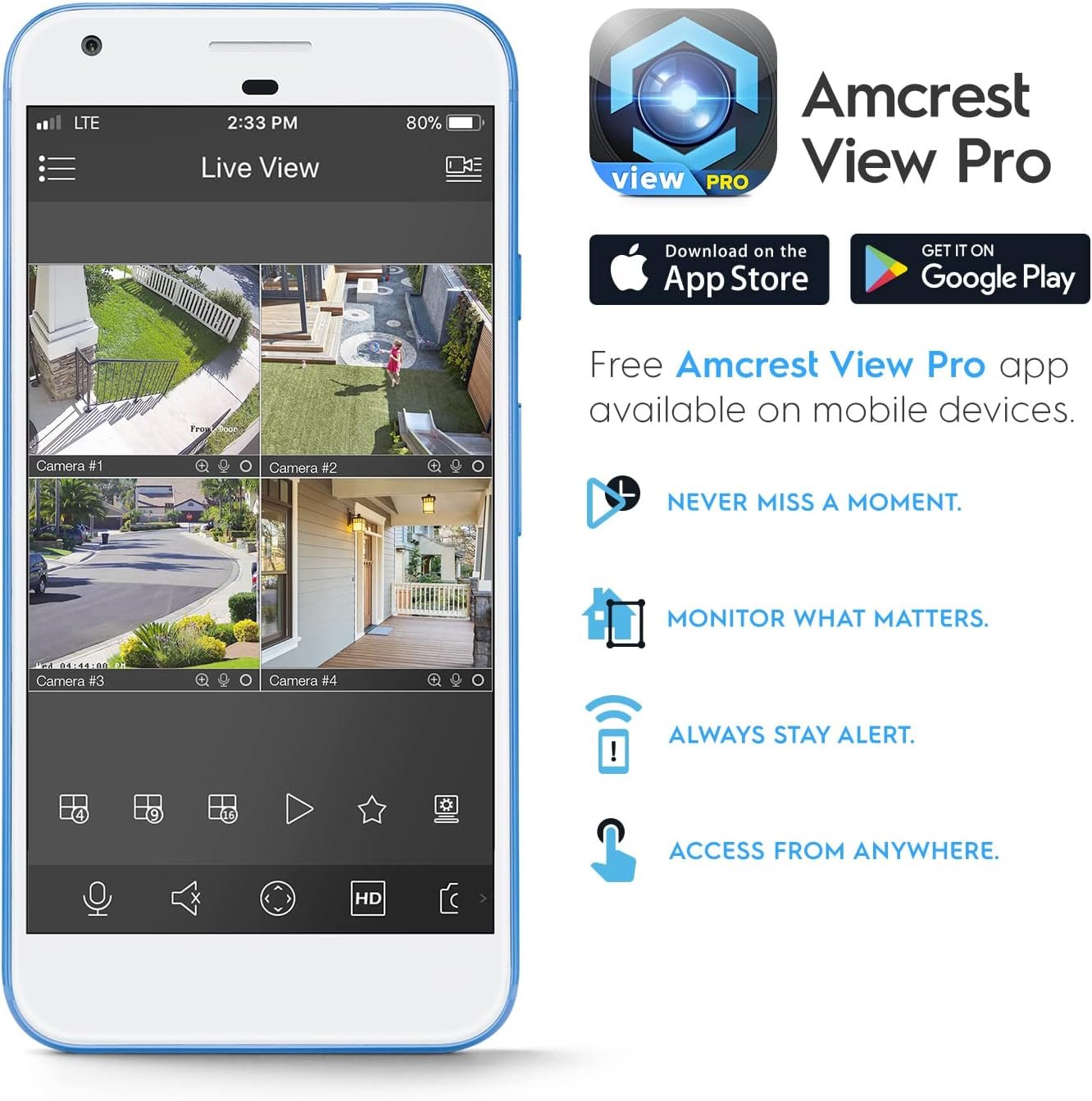 SMARTER SECURITY – Receive motion alert notifications and view your camera via your smartphone with the Amcrest View app. Monitor your camera on a PC using the Amcrest Surveillance Pro software or Blue Iris Professional. Works with Amcrest Cloud remote video storage, Amcrest NVRs, MicroSD (up to 256GB), and QNAP NAS, FTP, Google Chrome, Safari, Firefox and Chrome, Microsoft Edge. DORI Distance: Detect: 280.5ft, Observe: 112.2ft, Recognize: 56.1ft, Identify: 28.2ft